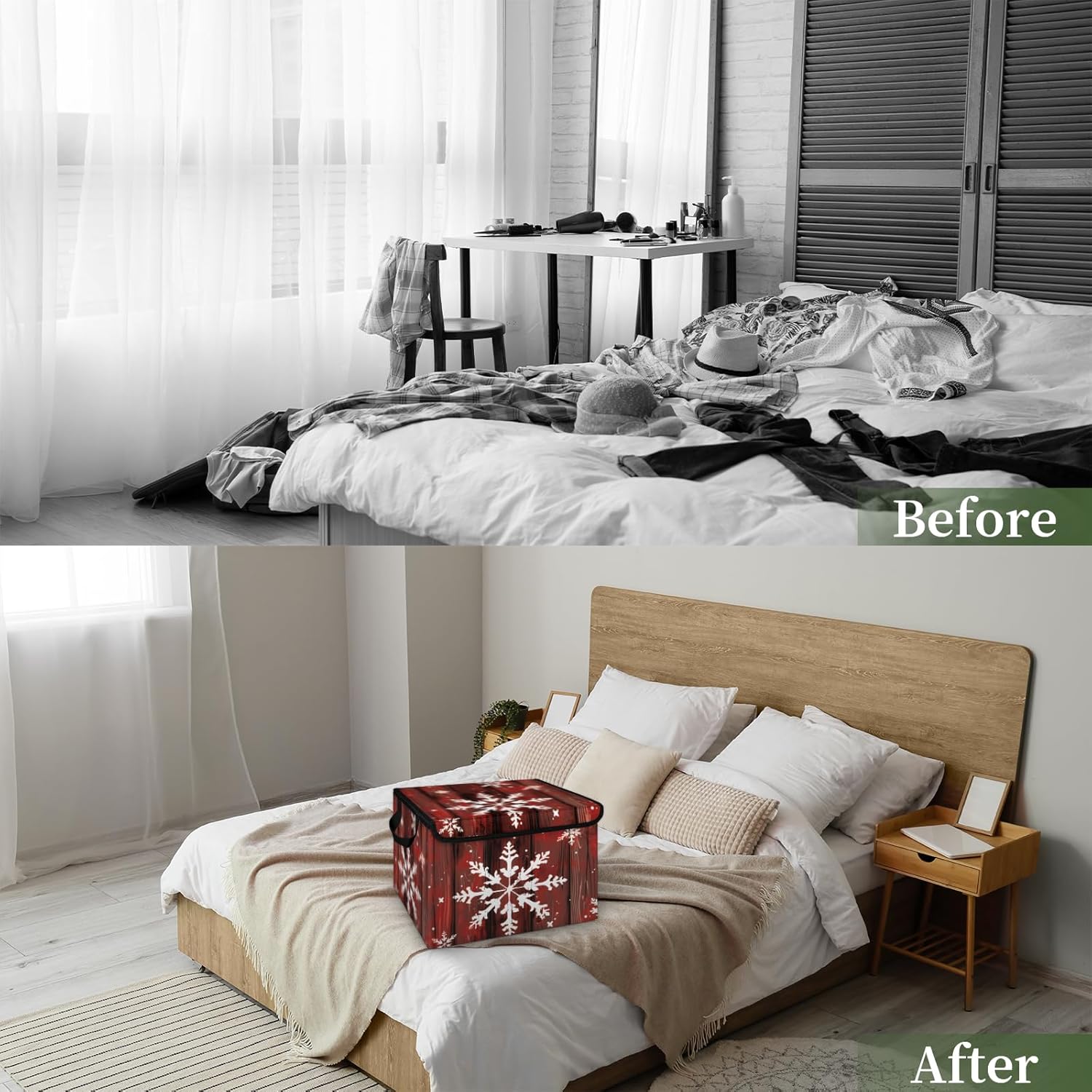 Closet Storage Bins Storage Baskets for Organizing with Flip-Top Lid & Handles, 27 Quart Large Linen Closet Organizers and Storage Cubes, Decorative Wardrobe Boxes for Organization (Snowflakes)