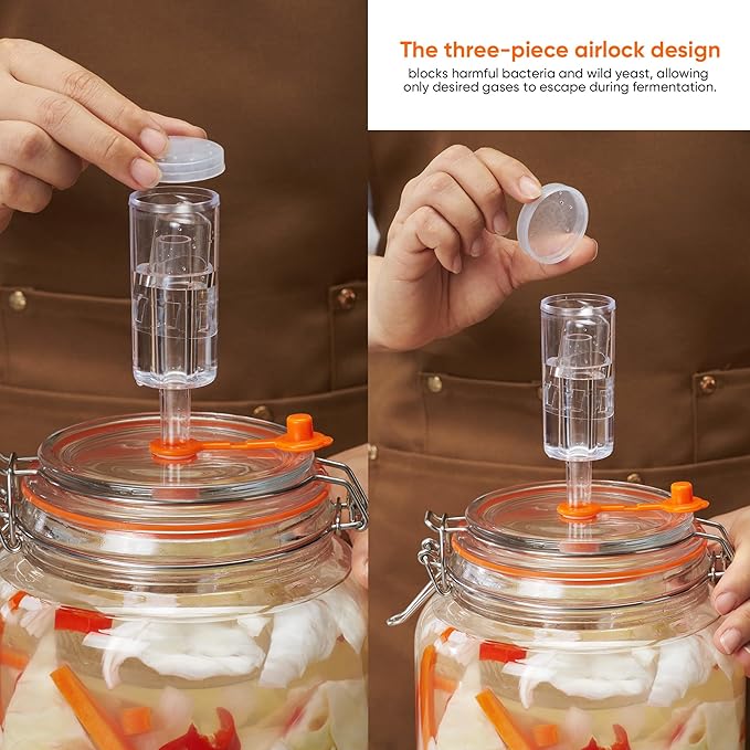 - Complete 2-Pack Fermentation System: This set features two 0.6gal fermentation jars equipped with all necessary accessories—weights, airlocks, silicone grommets, and seals—providing a comprehensive solution for home fermentation
