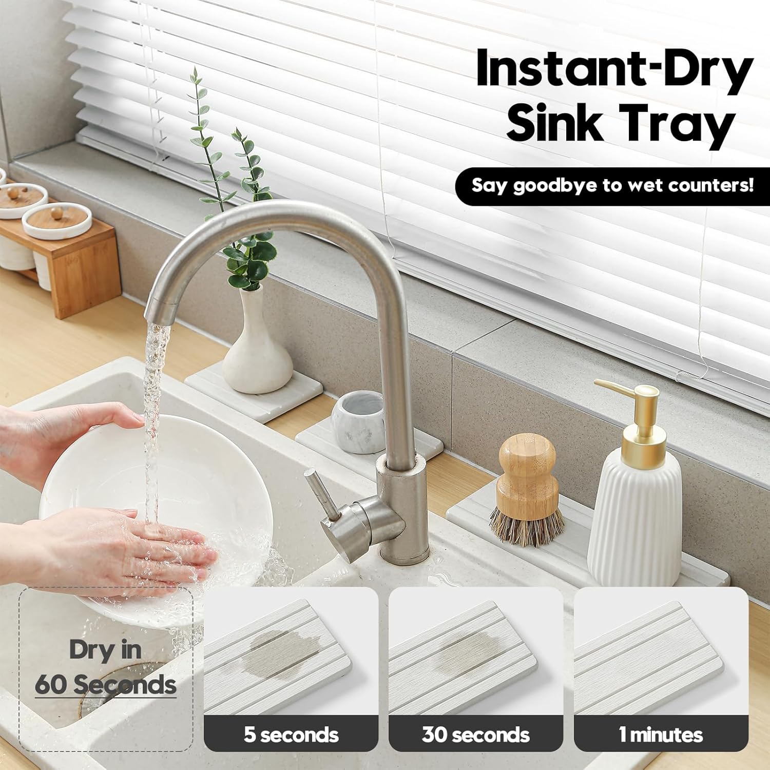 - 【Fast Drying Countertop Organizer】Keep your kitchen and bathroom countertops neatly arranged with this quick-dry diatomaceous earth stone sink caddy. This holder rack absorbs moisture quickly and is specially designed for your soaps, sponges, or brushes