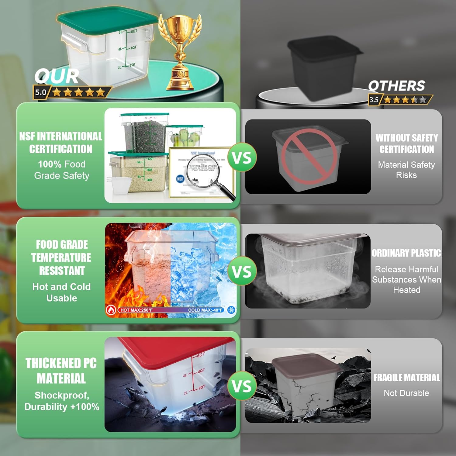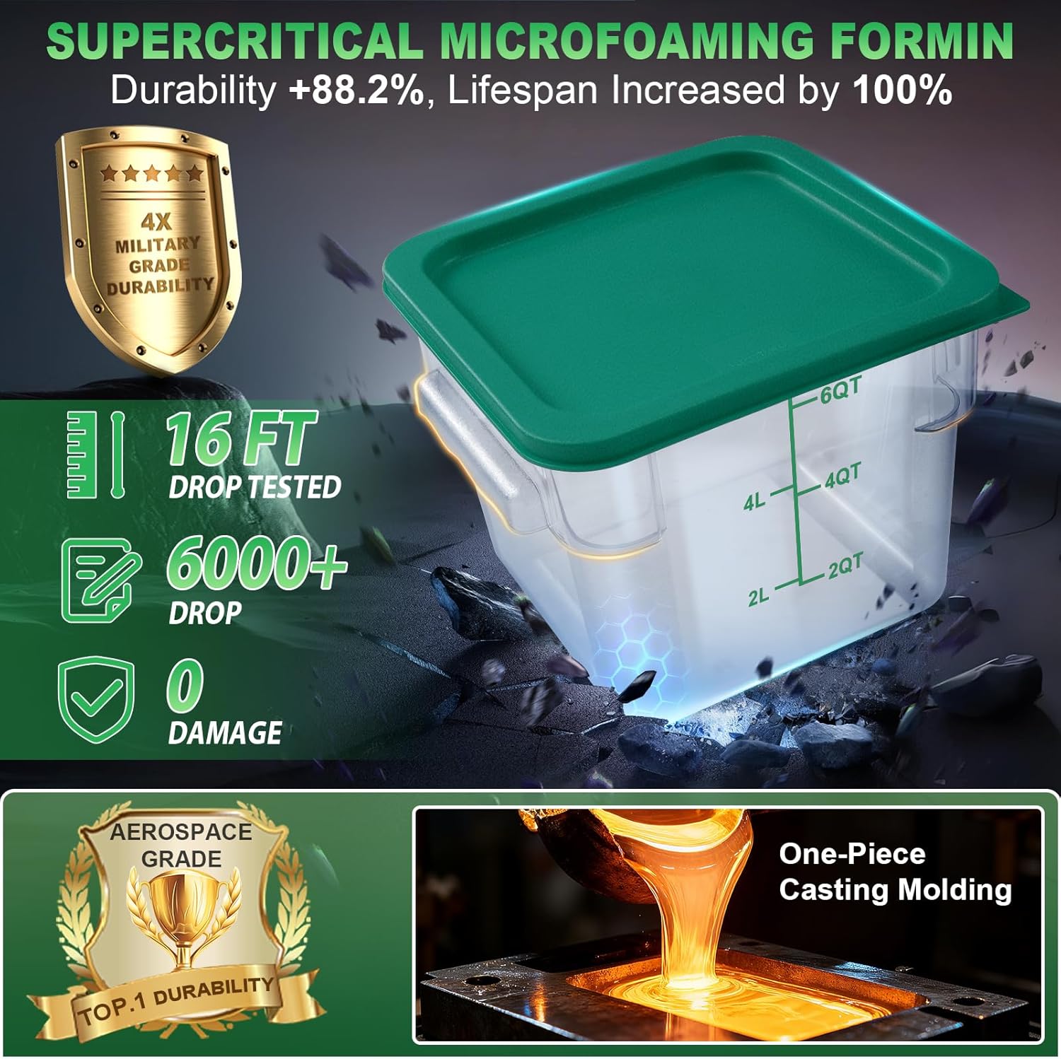 2QT&4QT NSF Food Storage Containers with Lids: 4 PCS [Total Food Grade][Hot&Cold Resistant] Commercial Clear Food Storage Containers for Restaurant Kitchen Proof Dough, Green