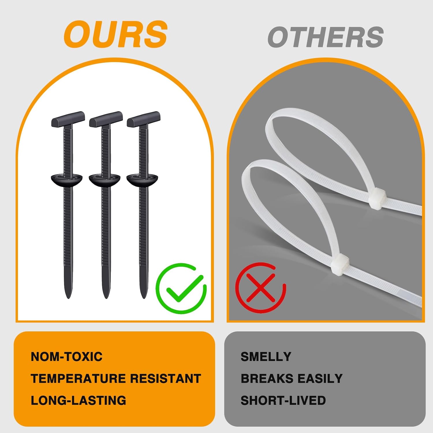 - Upgraded design: This Upgraded Nylon Universal Cable Tie Buckles features a change in the direction of the T-head and a thicker and wider T-head design, increasing its contact surface and enhancing its load-bearing and tensile capabilities. This Zip Ties highlights its excellent load-bearing capacity compared to the old style when fixing heavier components.