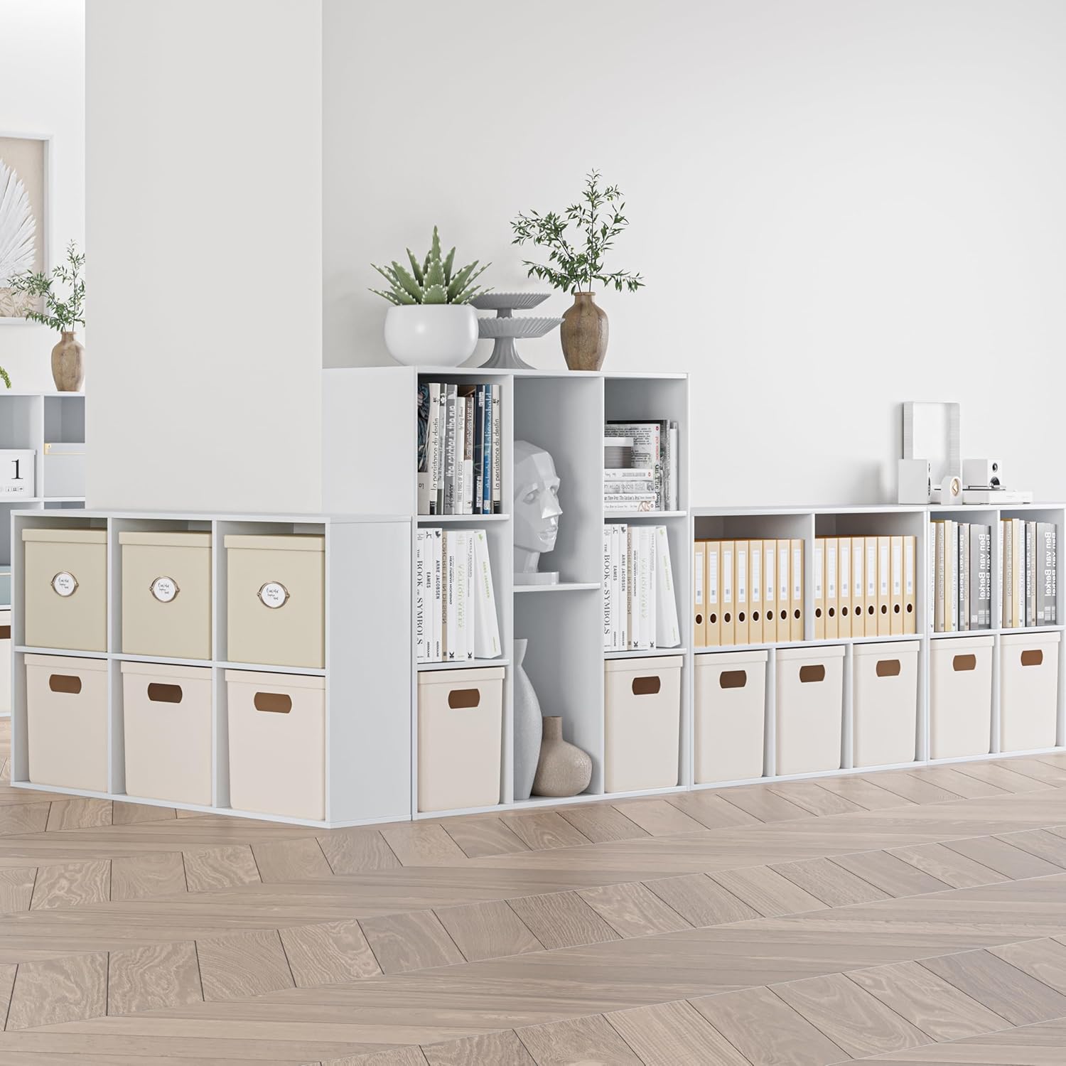 Wooden Cube Storage Organizer with Closed Back Panel, 11in Cube Shelf Opening, Bookshelf, Display Shelf,Closet Cabinet for Home and Office (Embossed White, 8-Cube 35.98L*9.45W*35.91H)