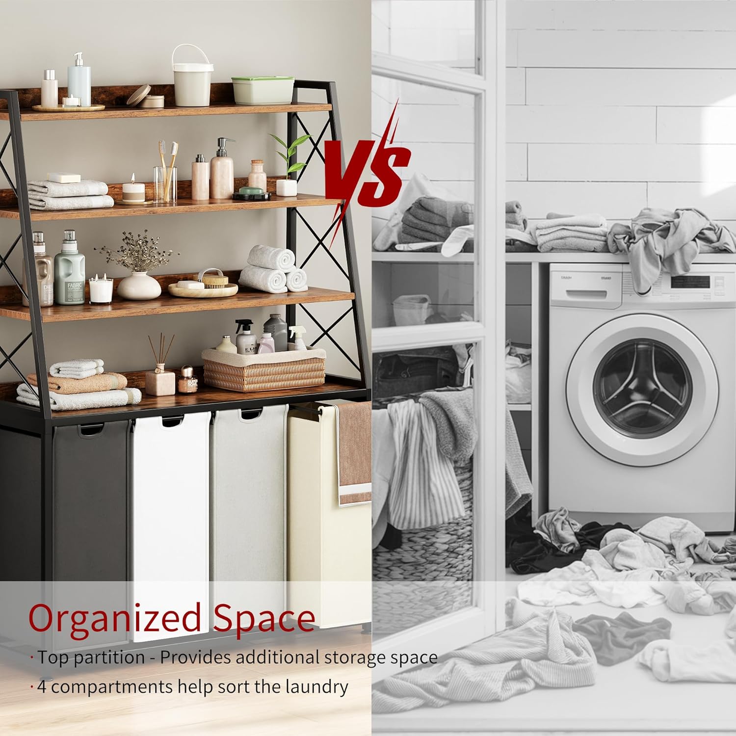 - Versatile and stylish design - The laundry Hamper with shelves features a detachable and pull-out design, and the four laundry bags can be removed from the shelves. It combines functionality with style, complementing the decor of any room, whether it's placed in the laundry room, bathroom, or bedroom. The vertical sorter design saves valuable floor space, allowing you to optimize your room layout