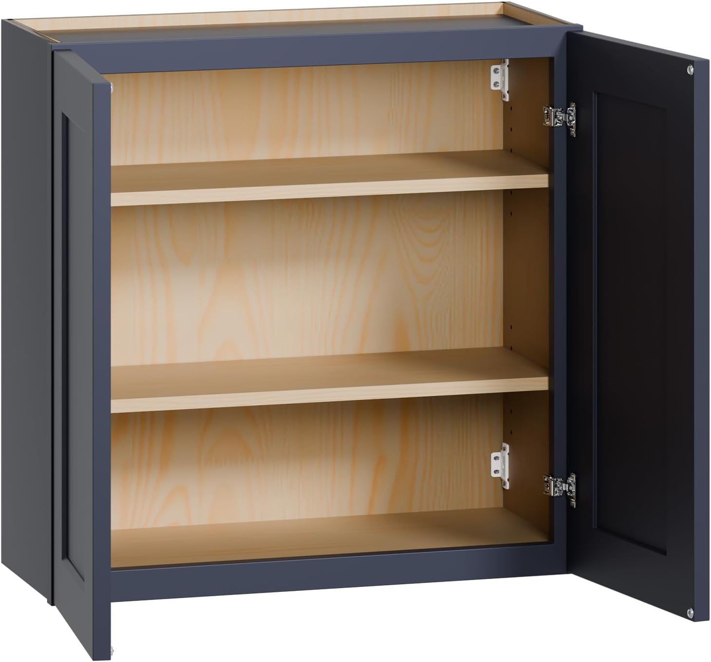 36 Inch Laundry Room Cabinets Wall Mounted, Solid Wood Over The Toilet Storage Cabinet, Bathroom Organizer Cabinets with 2 Shaker Door & Shelves, Easy to Assemble for Kitchen, Garage - Blue