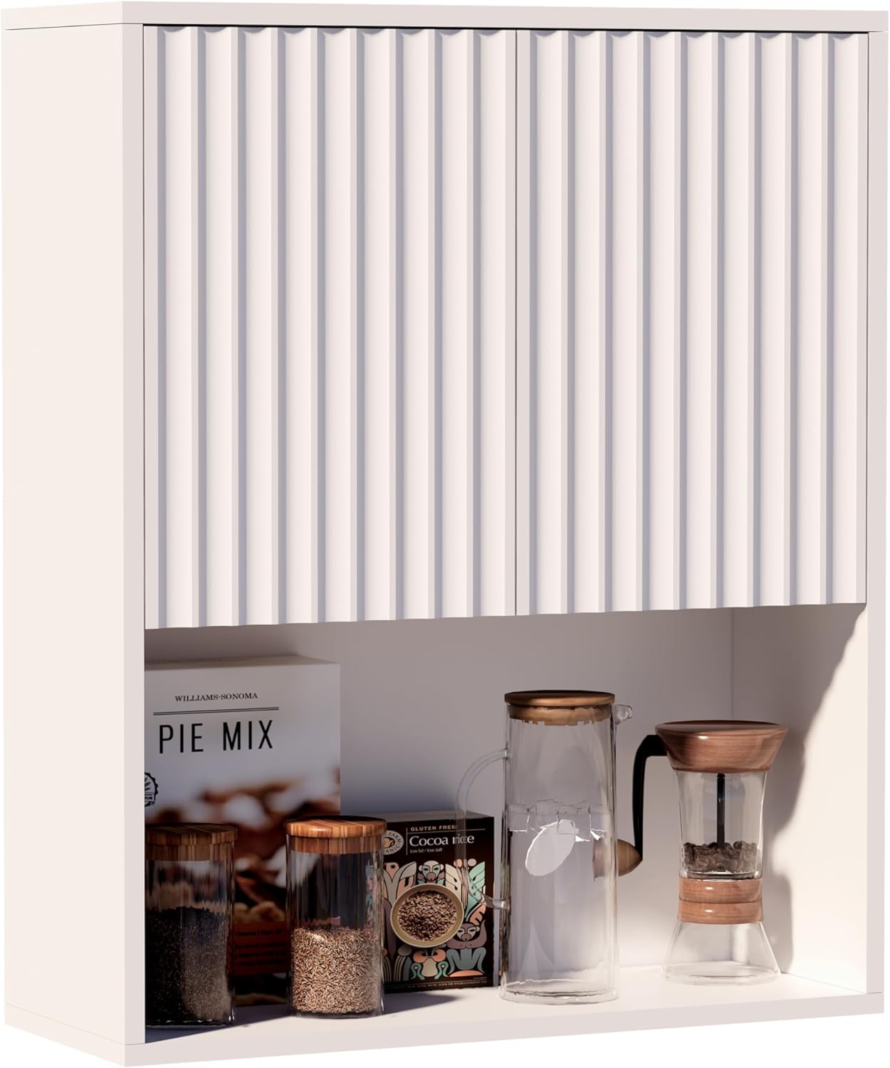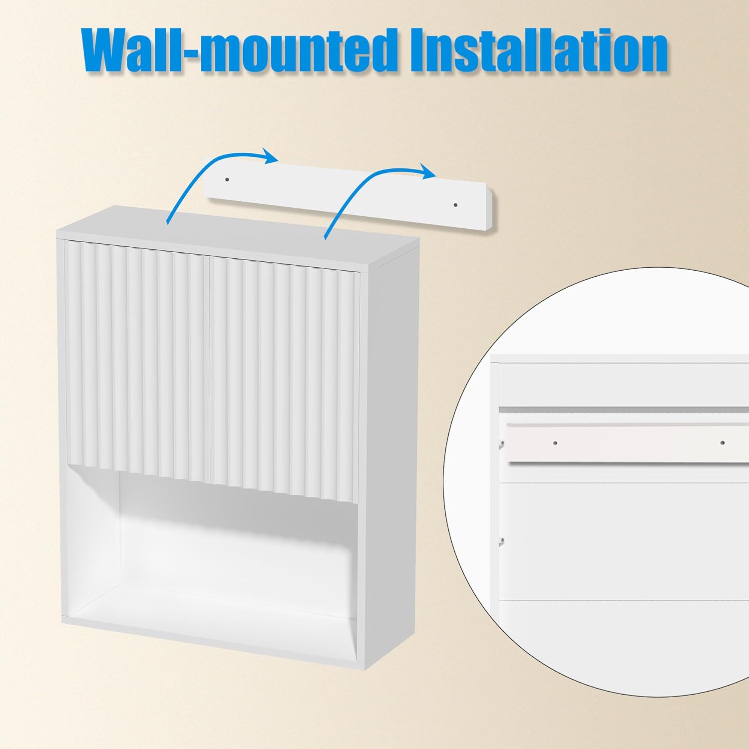 Fluted Bathroom Wall Cabinet,Medicine Cabinet with Adjustable Shelf,Over The Toilet Storage Cabinet for Laundry,Hanging Cabinet,Kitchen and Living Room Cabinets (White)