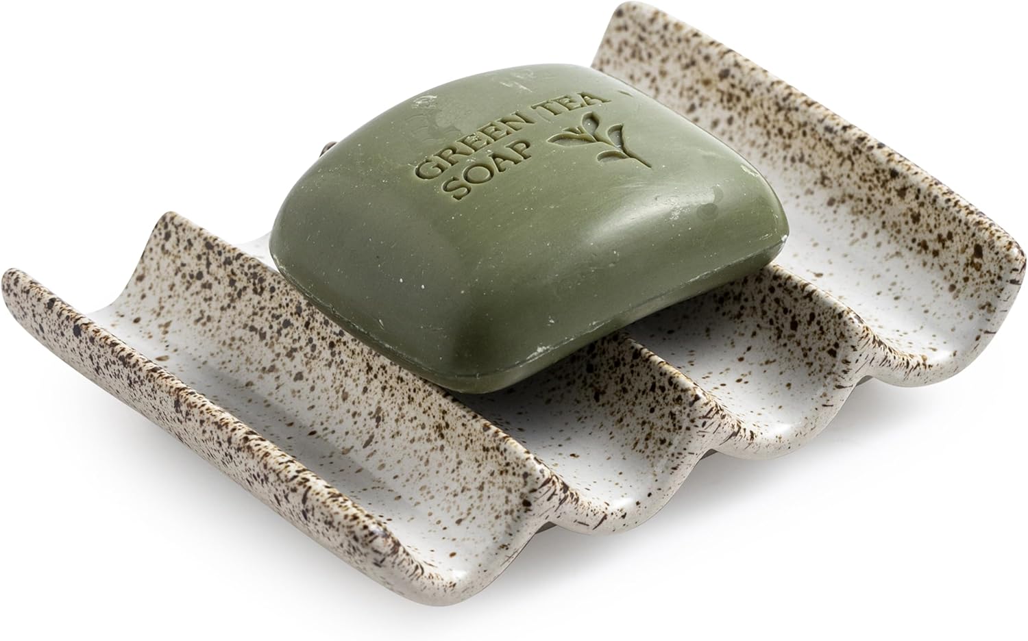 - [Elegant & Durable Ceramic Build] Crafted from high-glaze, heat-resistant ceramic, this ceramic soap dish is not only stylish but also easy to clean and dishwasher safe. Its refined finish makes it a practical yet beautiful bathroom soap dish.