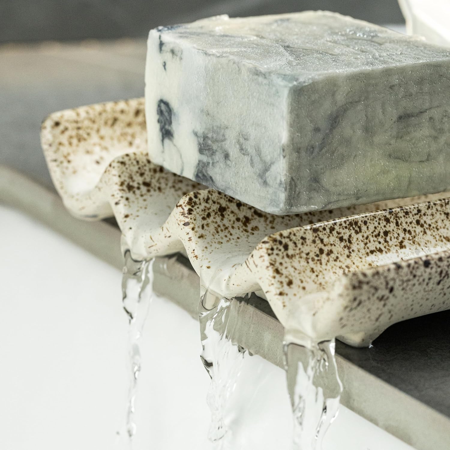 - [Keep Your Soap Perfectly Dry] Our newly upgraded soap dish is featured with raised lines and drainage grooves to minimize contact, boost airflow, and let water escape quickly. This self draining soap dish ensures your bar stays dry, lasts longer, and never turns soggy — making it the ultimate soap saver!