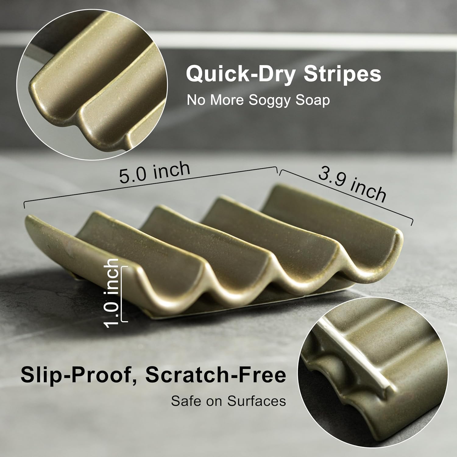 - [Easy-Clean Ceramic Build] Crafted from high-quality ceramic soap dish material with a smooth, glazed surface, this bar soap holder resists stains and is effortlessly cleaned with a simple rinse. Practical, hygienic, and built for daily use.