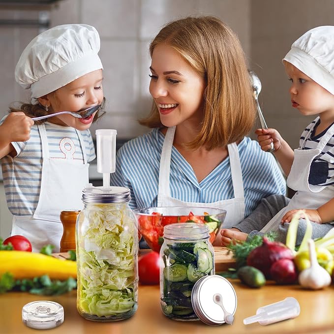 Tessco for you 4 Set Fermentation Kit, Wide Mouth Fermentation Lids with Weights for Mason Jars Sauerkraut Probiotic Food (No Jars)