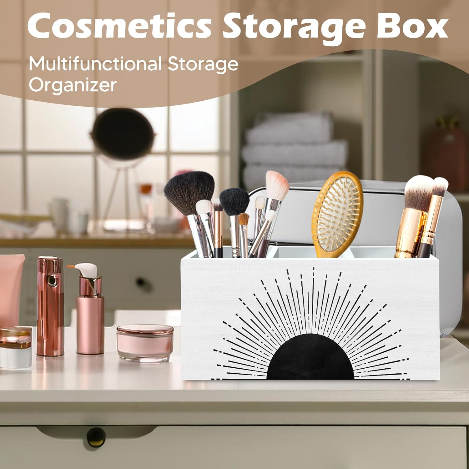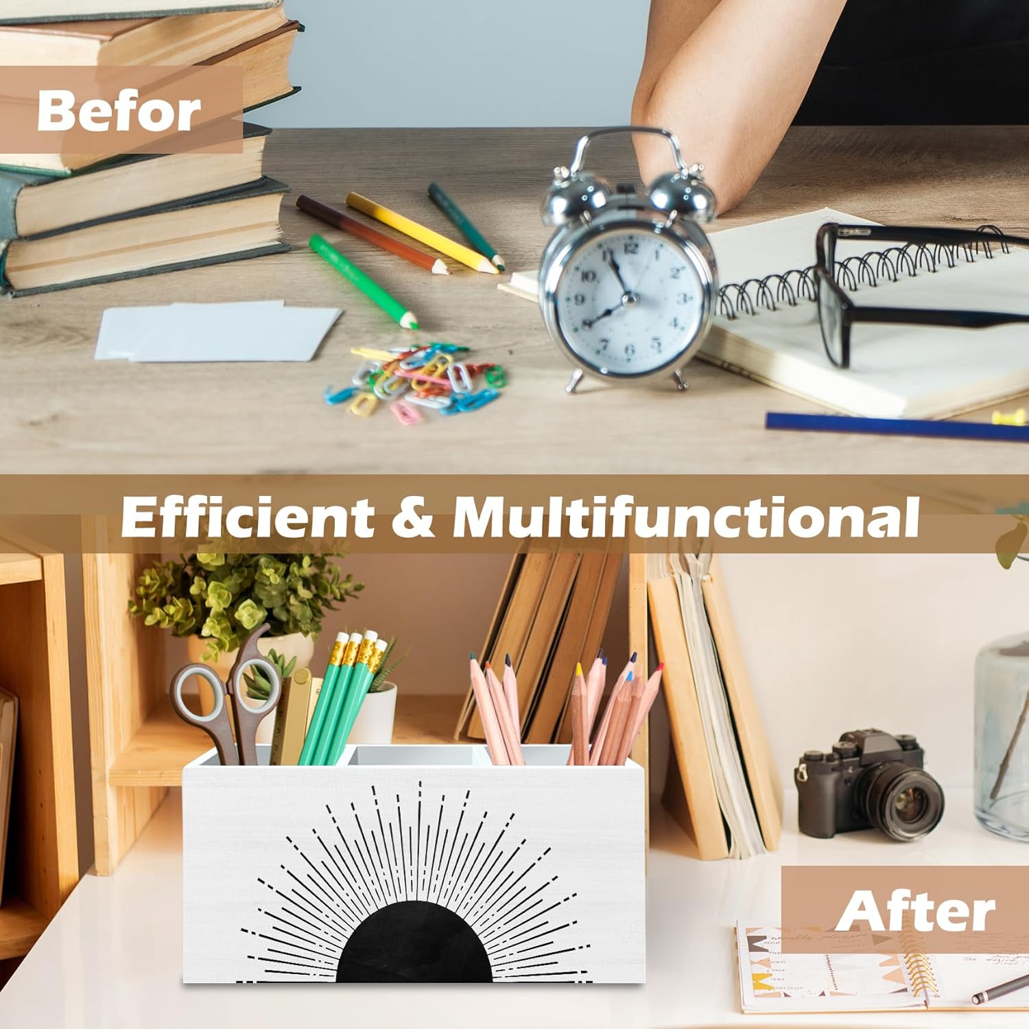 DILSJ Boho Abstract Sunshine Pen Pencil Holder Organizer for Desk, Boho Office Decor, Black and White Mid Century Modern Minimalist Sunshine Wooden Box Signs for Home Office Desk Tabletop Decoration
