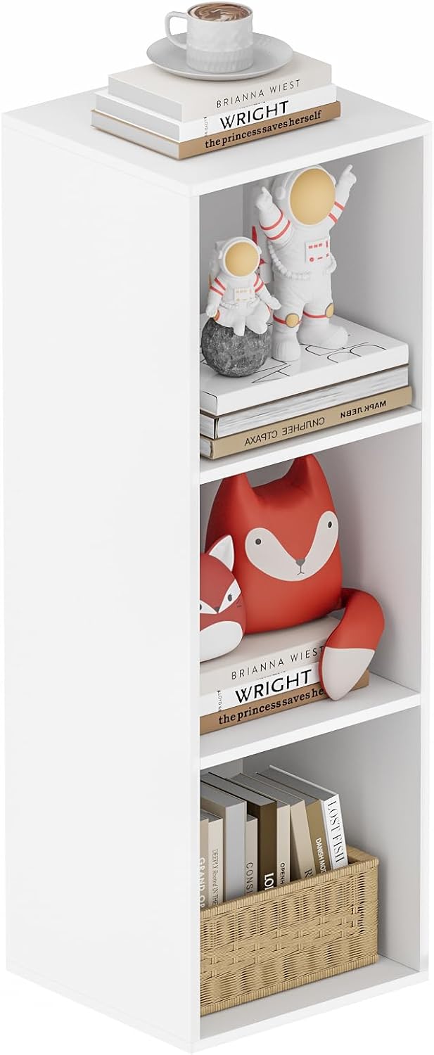 Bookshelf, Wooden Cube Storage Organizer with 11" Open Cubes, Stackable Modular Bookcase for Room Divider Storage, Book Shelf for Living Room, Bedroom, Office (White, 3-Cube)