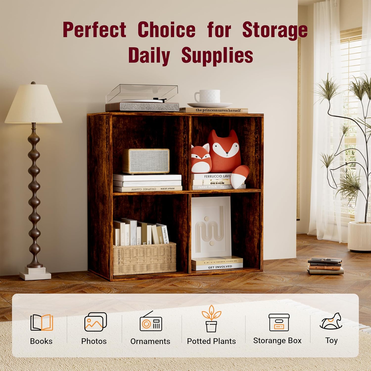 Book Shelf, Wooden Cube Storage Organizer with 11" Open Cubes, Stackable Bookcase for Room Divider Storage, Bookshelf for Living Room, Bedroom, Office (Indonesian Antique Oak, 5-Cube)