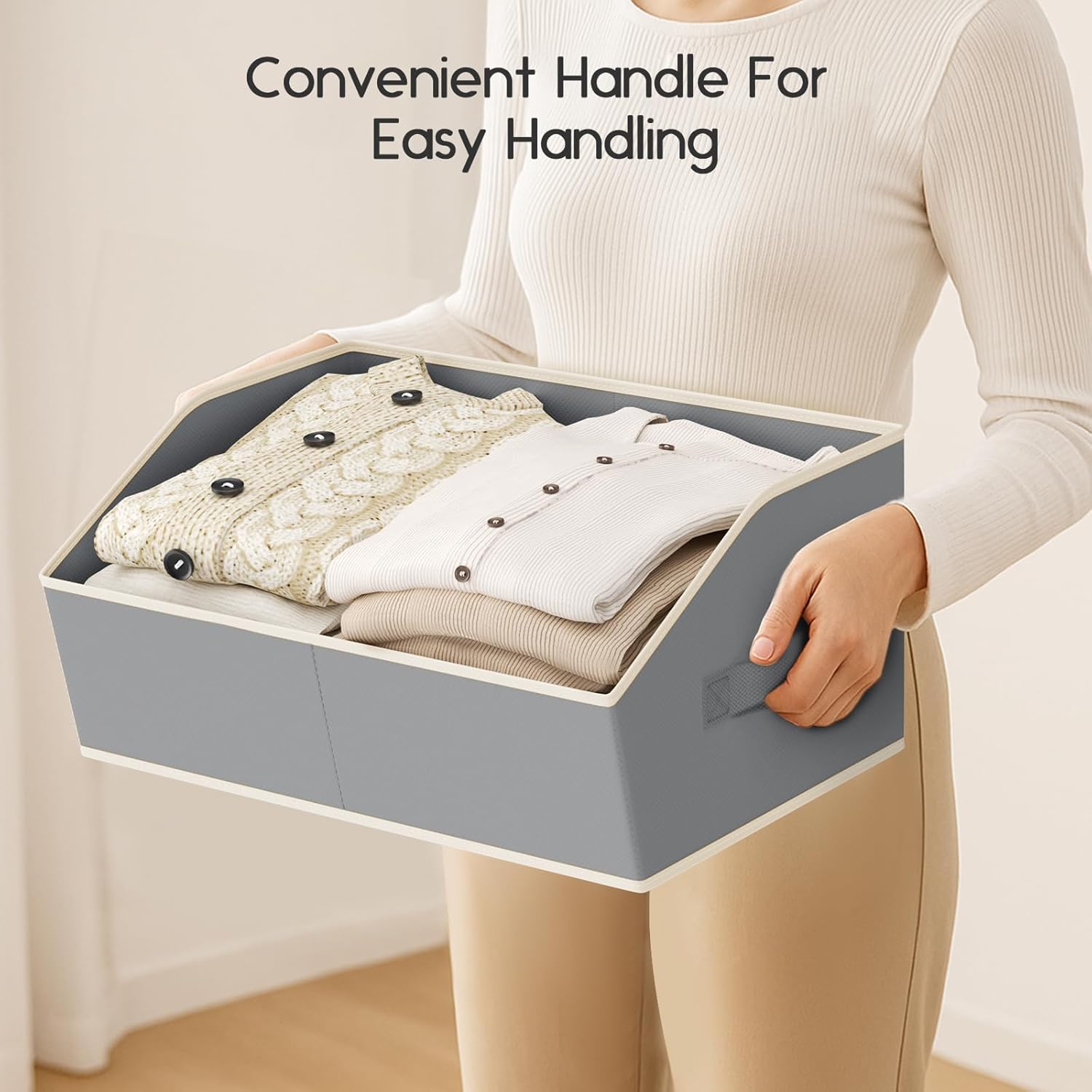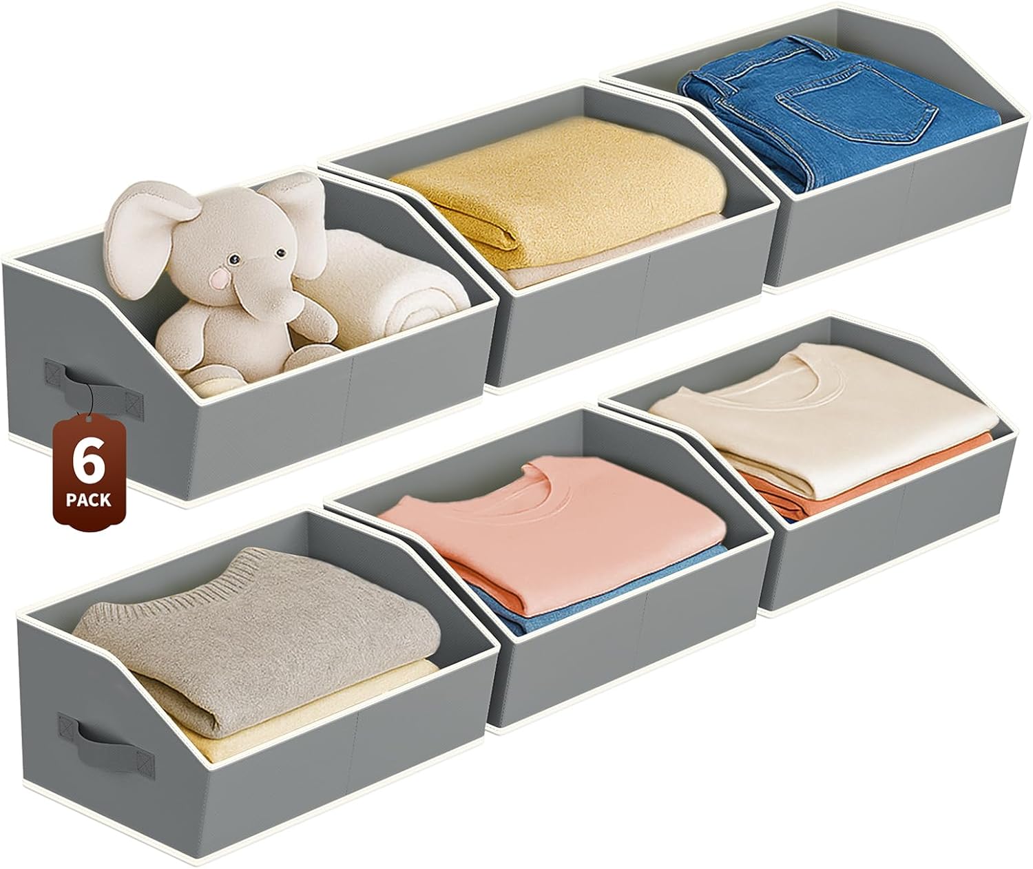Large Closet Organizers and Storage Bins - 6 Pack Trapezoid Storage Baskets for Shelves, Foldable Fabric Baskets with Handles Ideal for Closet, Basket, Wardrobe and Shelf Storage, Grey