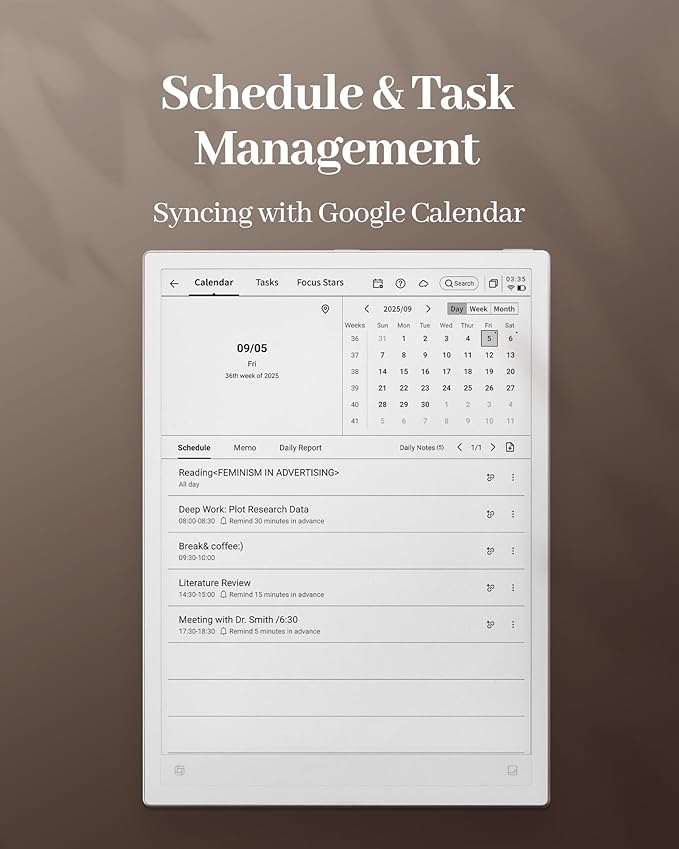 - Seamless Google Calendar Sync – Connect this note taking tablet with Google Calendar to keep schedules updated across devices. Stay productive without switching tools—AINOTE 2 supports app integrations that make your digital notepad even smarter.
