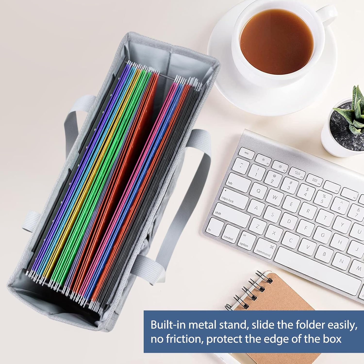 - Easy to use:The important document organizer has built-in metal brackets for easy sliding of folders, Our File Organizer Box has a side pocket to store items in studying and working.This desktop box with 2 heavy-duty handles to carry easily.