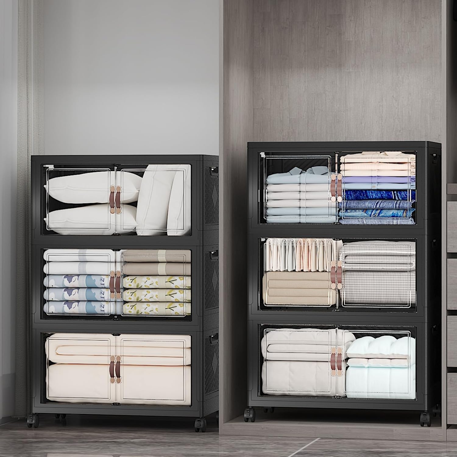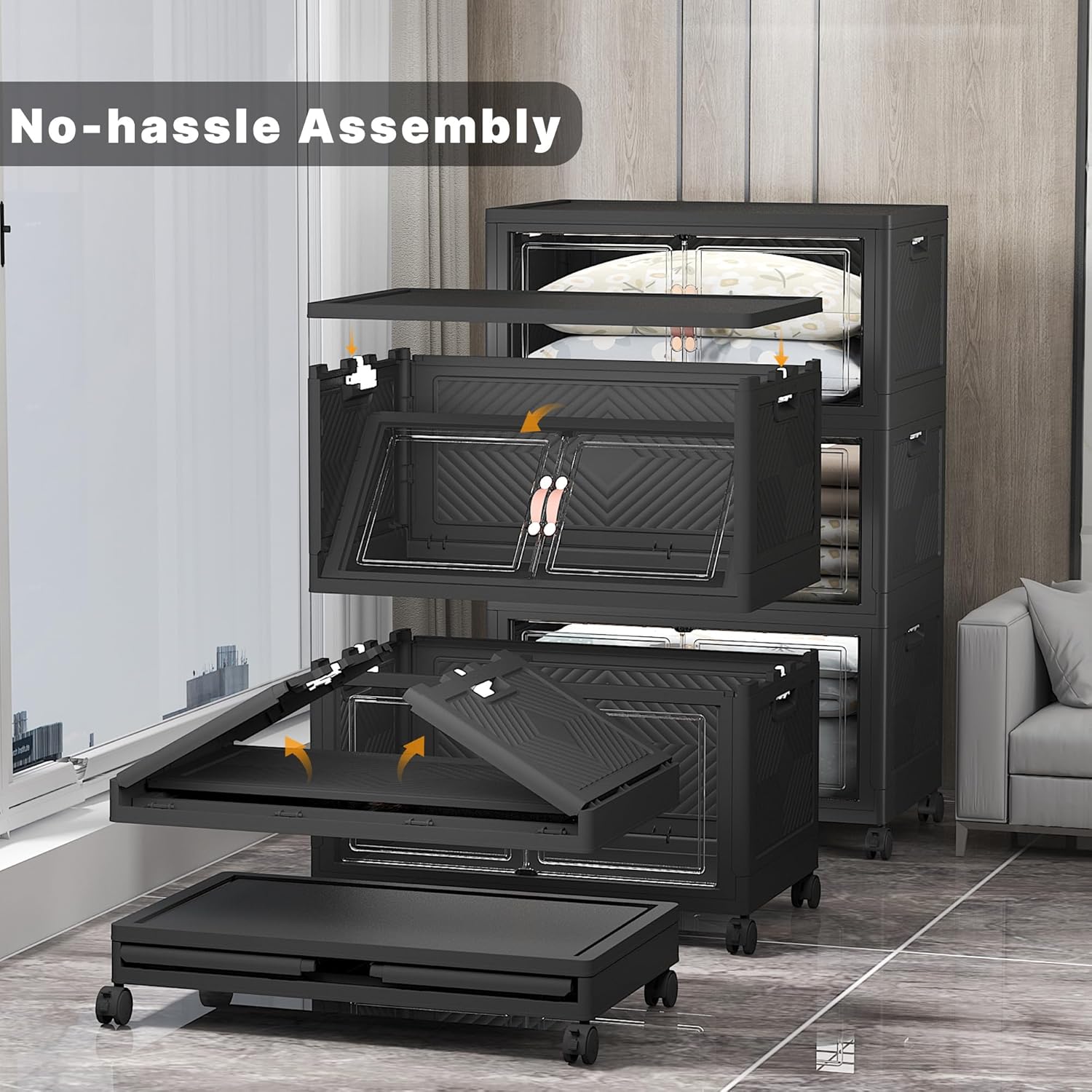 Extra Large Stackable Storage Bins with Lids & Wheels & Door, 960QT-160QT/40GAL*6Pack Foldable Collapsible Closet Organizers, Plastic containers drawers for bedroom Dorm