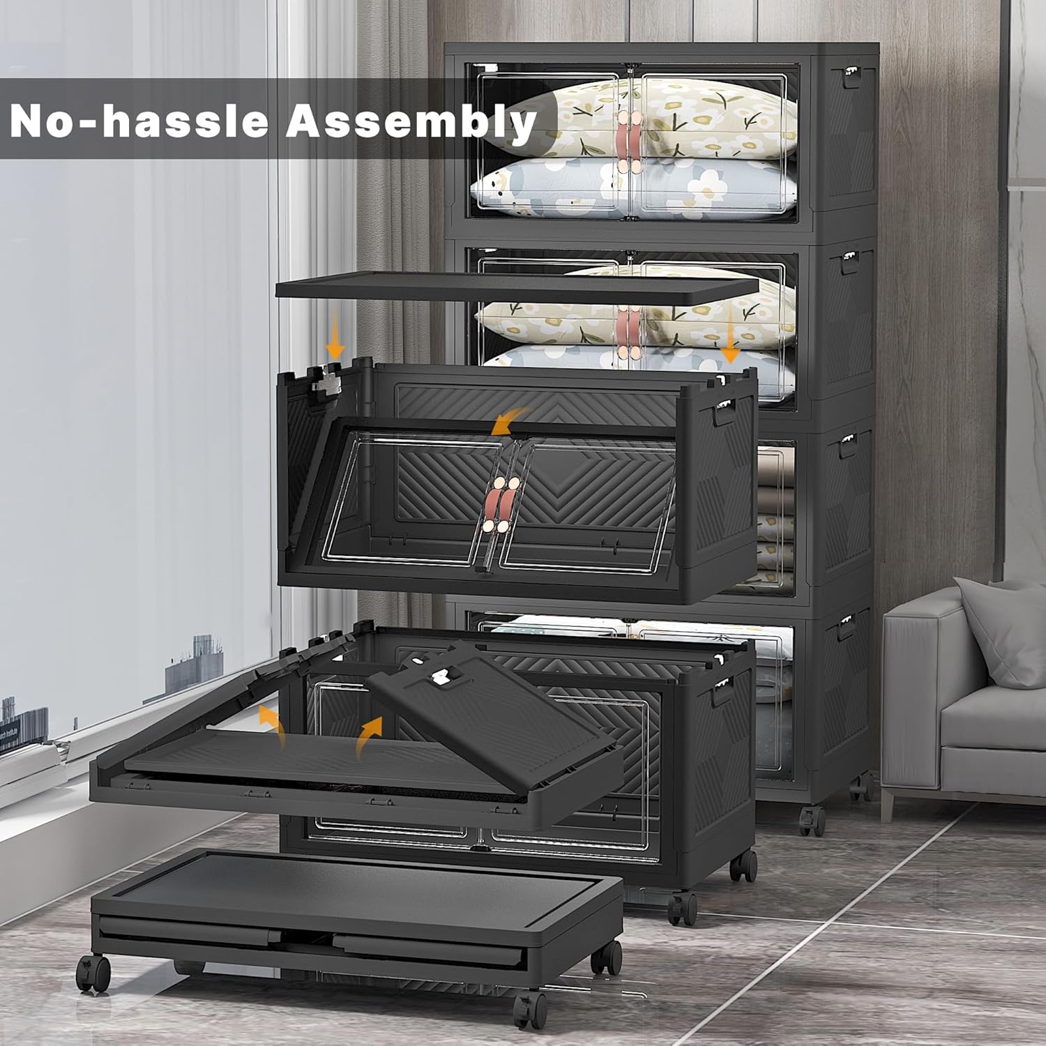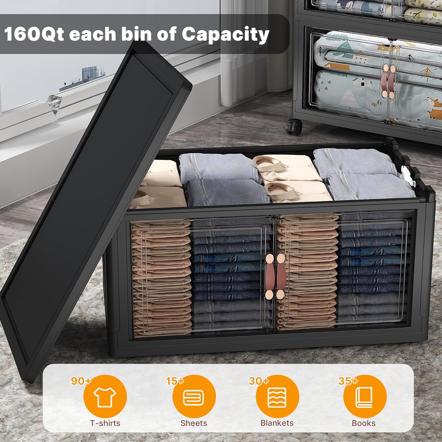 Extra Large Stackable Storage Bins with Lids & Wheels & Door, 1280QT-160QT/40GAL*8Pack Foldable Collapsible Closet Organizers, Plastic containers drawers for bedroom Dorm