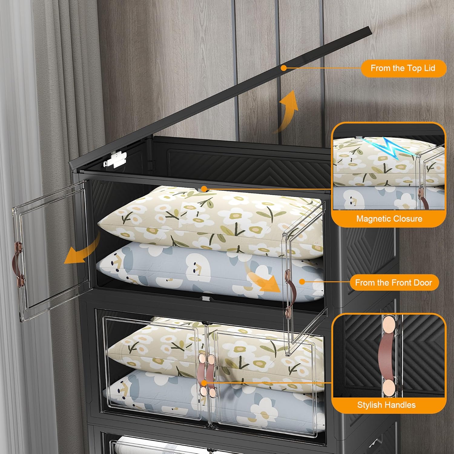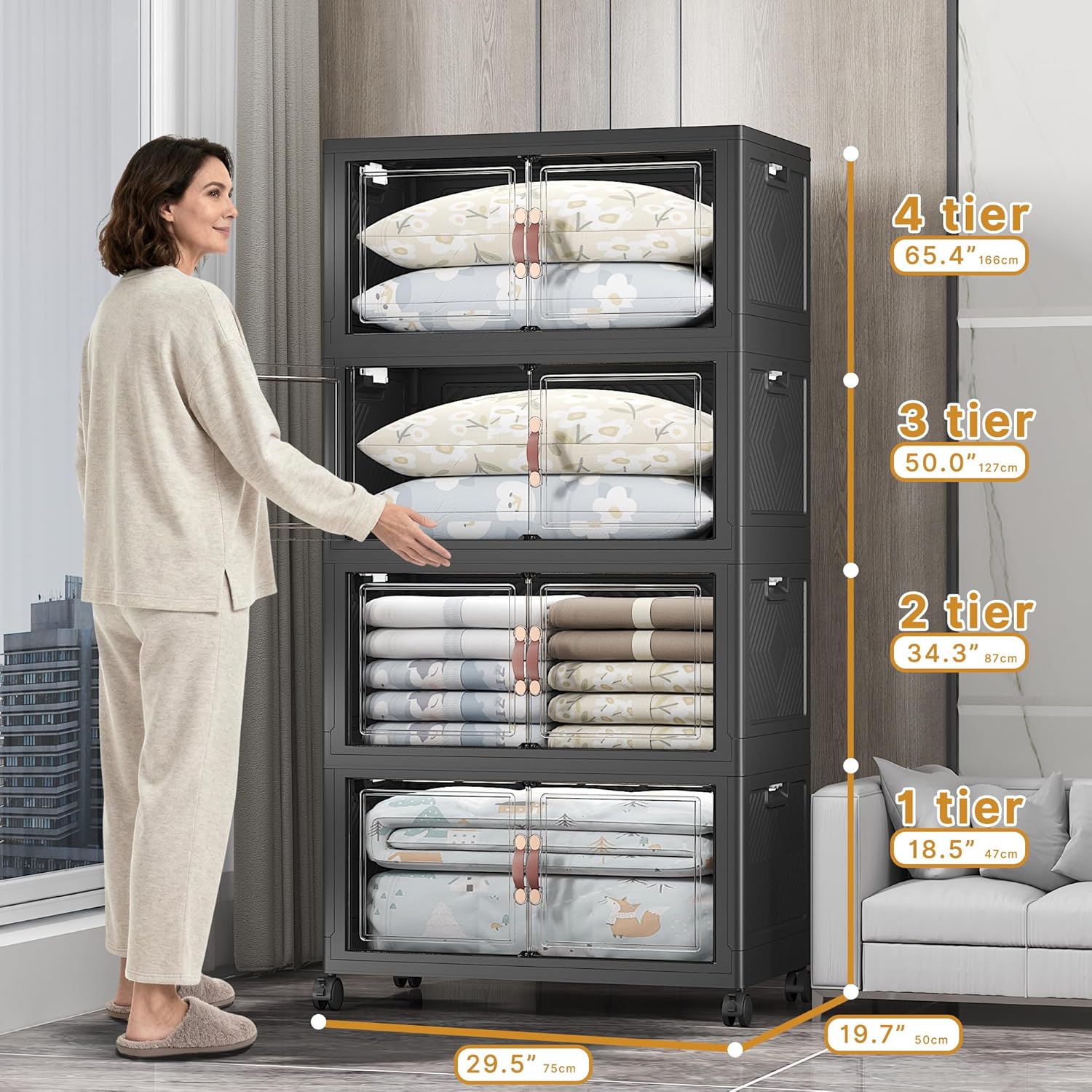 Extra Large Stackable Storage Bins with Lids & Wheels & Door, 640QT-160QT/40GAL*4Pack Foldable Collapsible Closet Organizers, Plastic containers drawers for bedroom Dorm