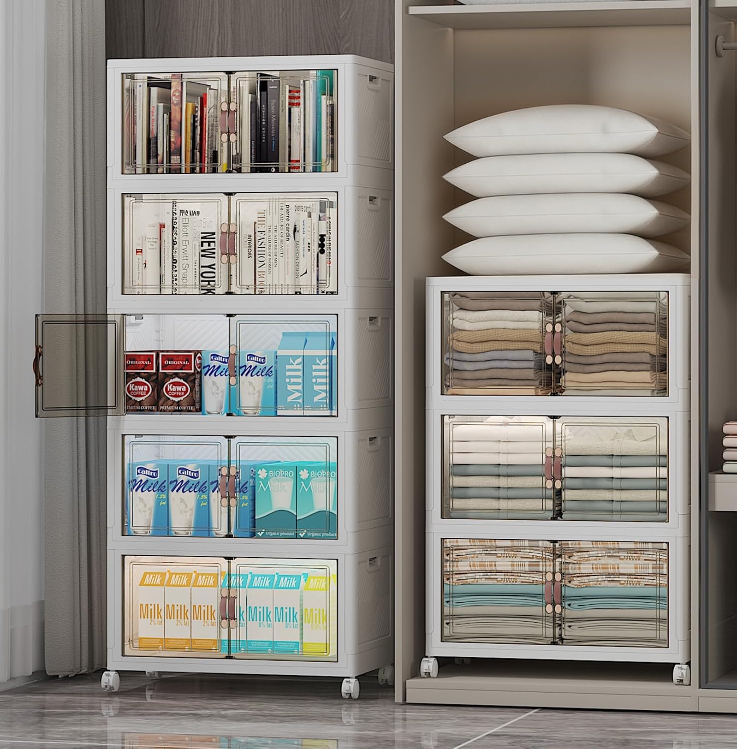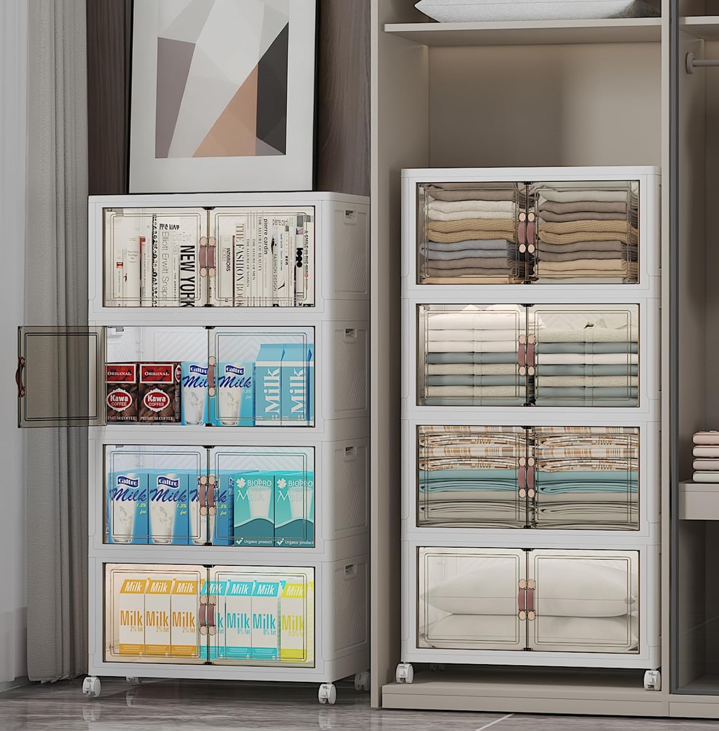 Extra Large Stackable Storage Bins with Lids & Wheels & Door, 416QT-52QT/13GAL*8Pack Foldable Collapsible Closet Organizers, Plastic containers drawers for bedroom Dorm