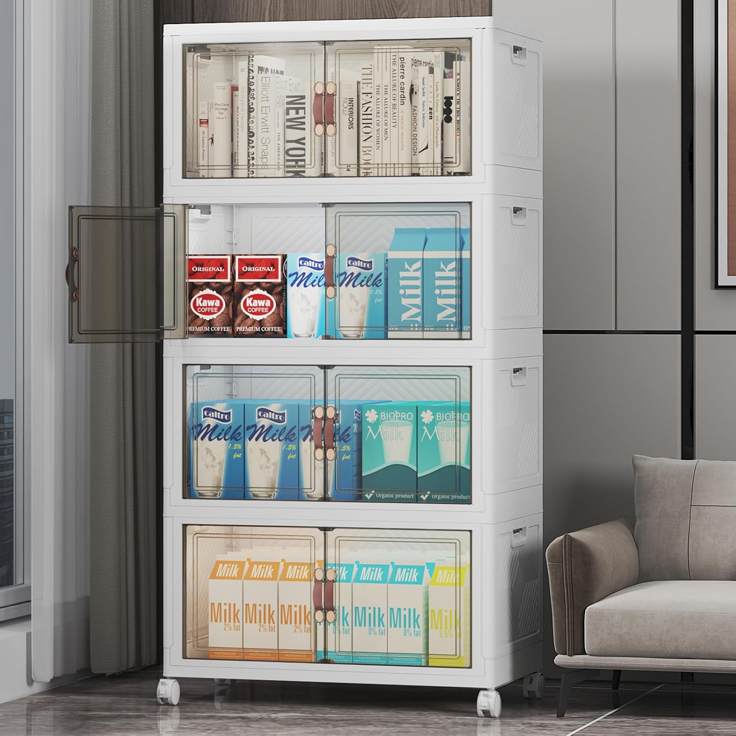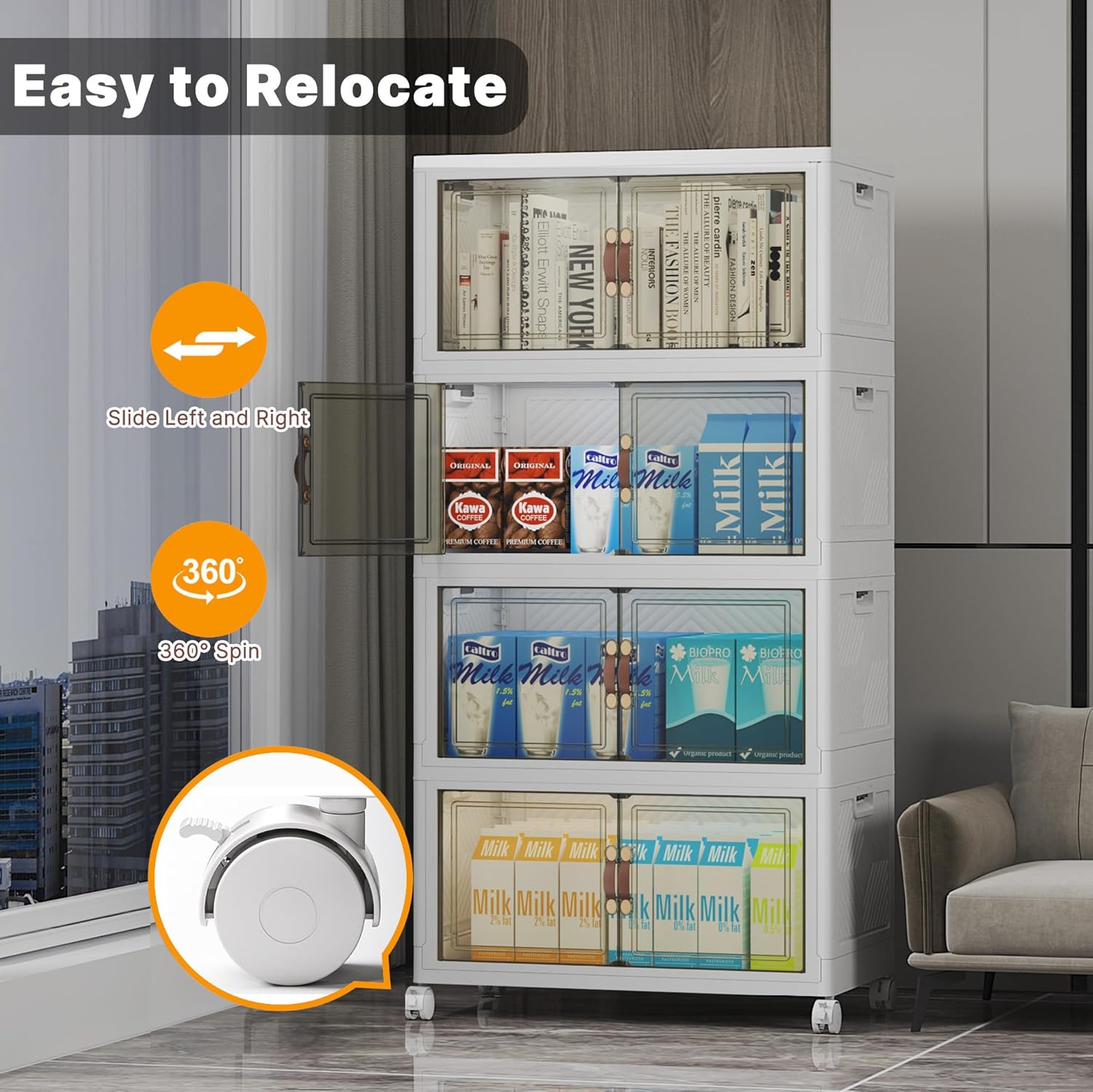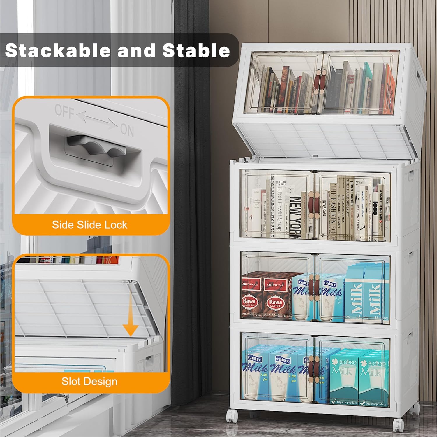 Extra Large Stackable Storage Bins with Lids & Wheels & Door, 208QT-52QT/13GAL*4Pack Foldable Collapsible Closet Organizers, Plastic containers drawers for bedroom Dorm