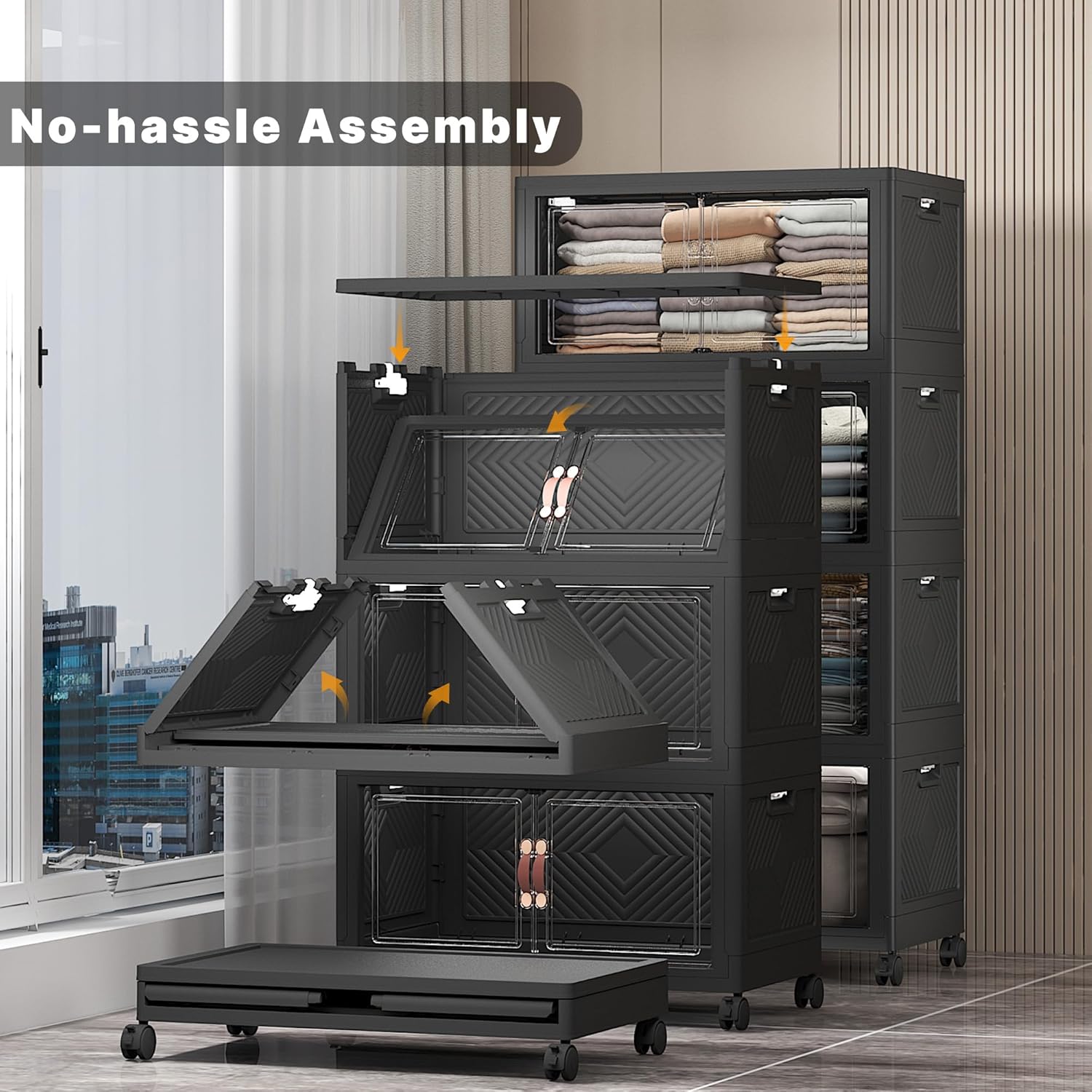 - 【Smooth Mobility with Locking Wheels】: Easily move your storage wherever you need it. These stackable storage bins with wheels feature four smooth-rolling casters, including two locking brakes, keeping your bins stable yet mobile — great for bedrooms, dorms, or offices.