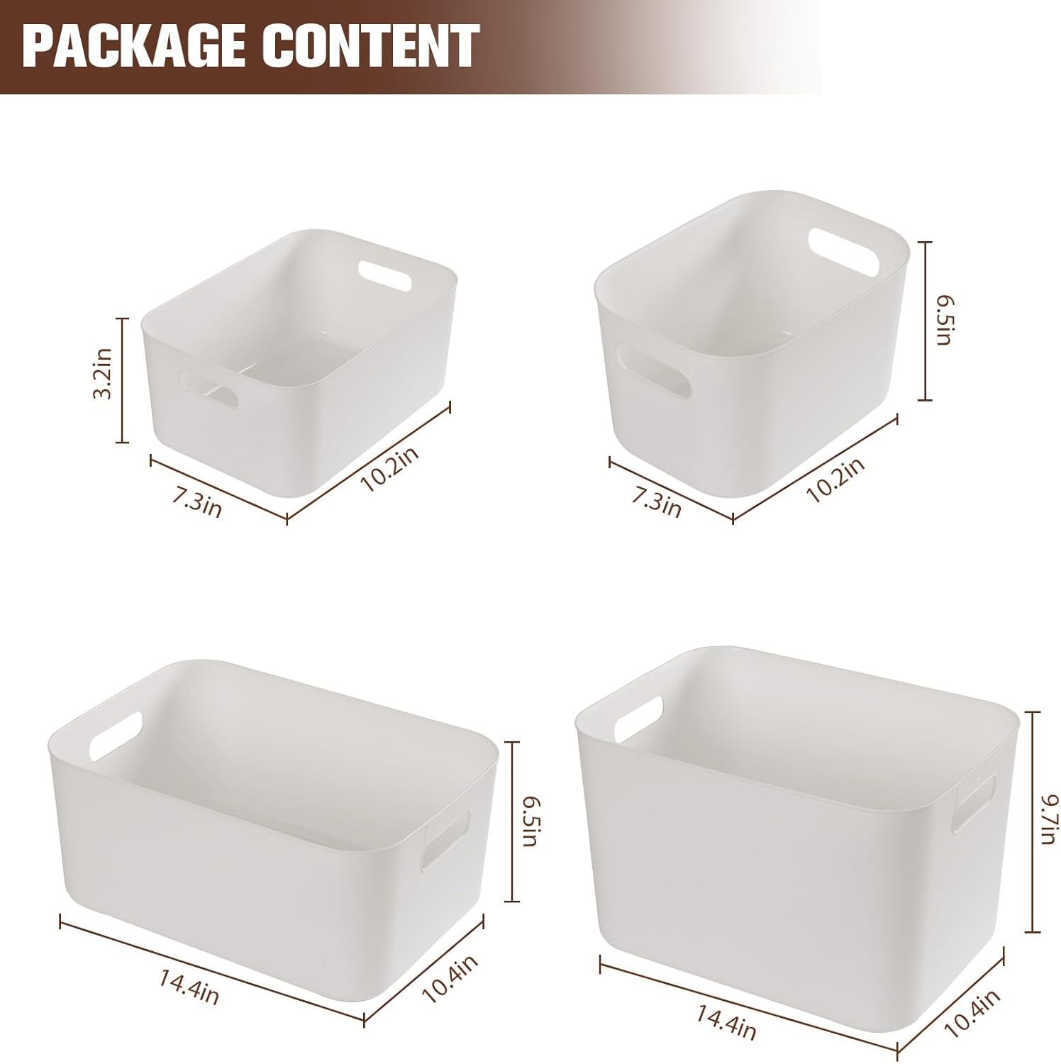 - 【Set of 12 Plastic Storage Bins】Includes 12 pack storage bins, 2 extra large, 4 large, 2 medium and 4 small. Extra Large Size: 14 x 10 x 9.4 inches. Large Size: 14 x 10 x 6 inches. Medium Size: 10 x 7 x 6 inches. Small Size: 10 x 7 x 4 inches. These various sizes cater to your storage needs for items of all sizes