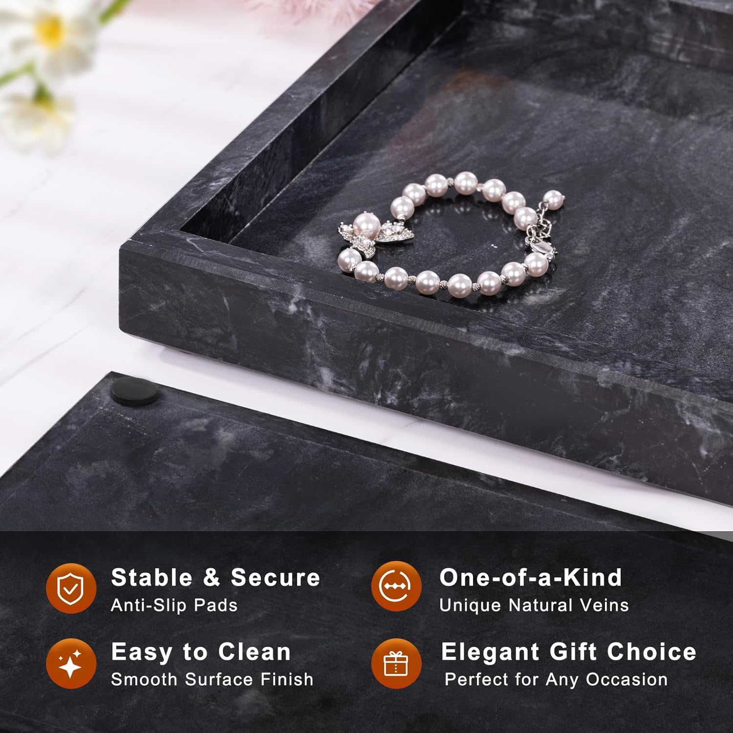 - Unique Veins & Stylish Decor: Each marble bathroom vanity tray is not just an organizer, but a one-of-a-kind marble tray with unique natural veins, ensuring no two pieces are alike. It adds a luxurious touch and timeless elegance to your home decor