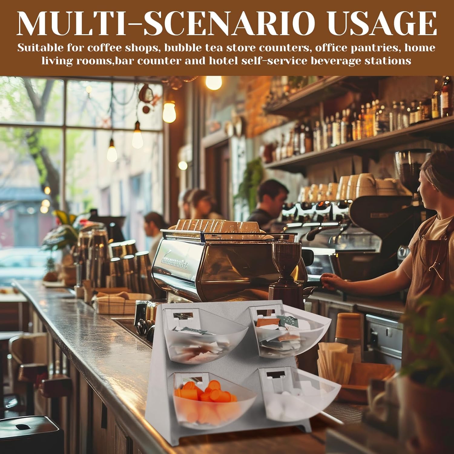 - Nice for Various Settings: whether it's a coffee shop, office pantry, or home kitchen, this condiment holder accommodates a variety of environments; Designed for easy placement on countertops, drawers, and cabinets, it keeps everything tidy and accessible; Its wide range of usage scenarios makes it an ideal coffee caddy for any setting
