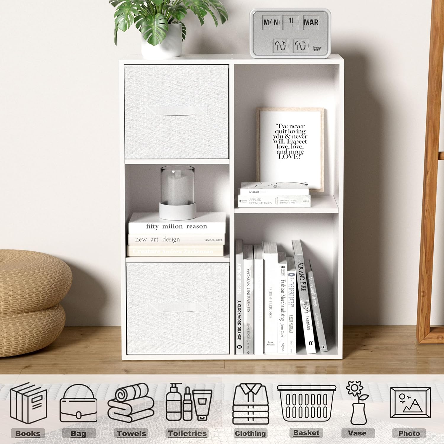 VAFHYLISS Cube Bookshelf, White Wooden Cube Storage Organizer, Freestanding Book Shelf, Cubby Shelf, Perfect Shelves for Bedroom, Kids Room, Closet, Classroom & Office (5-Cube)