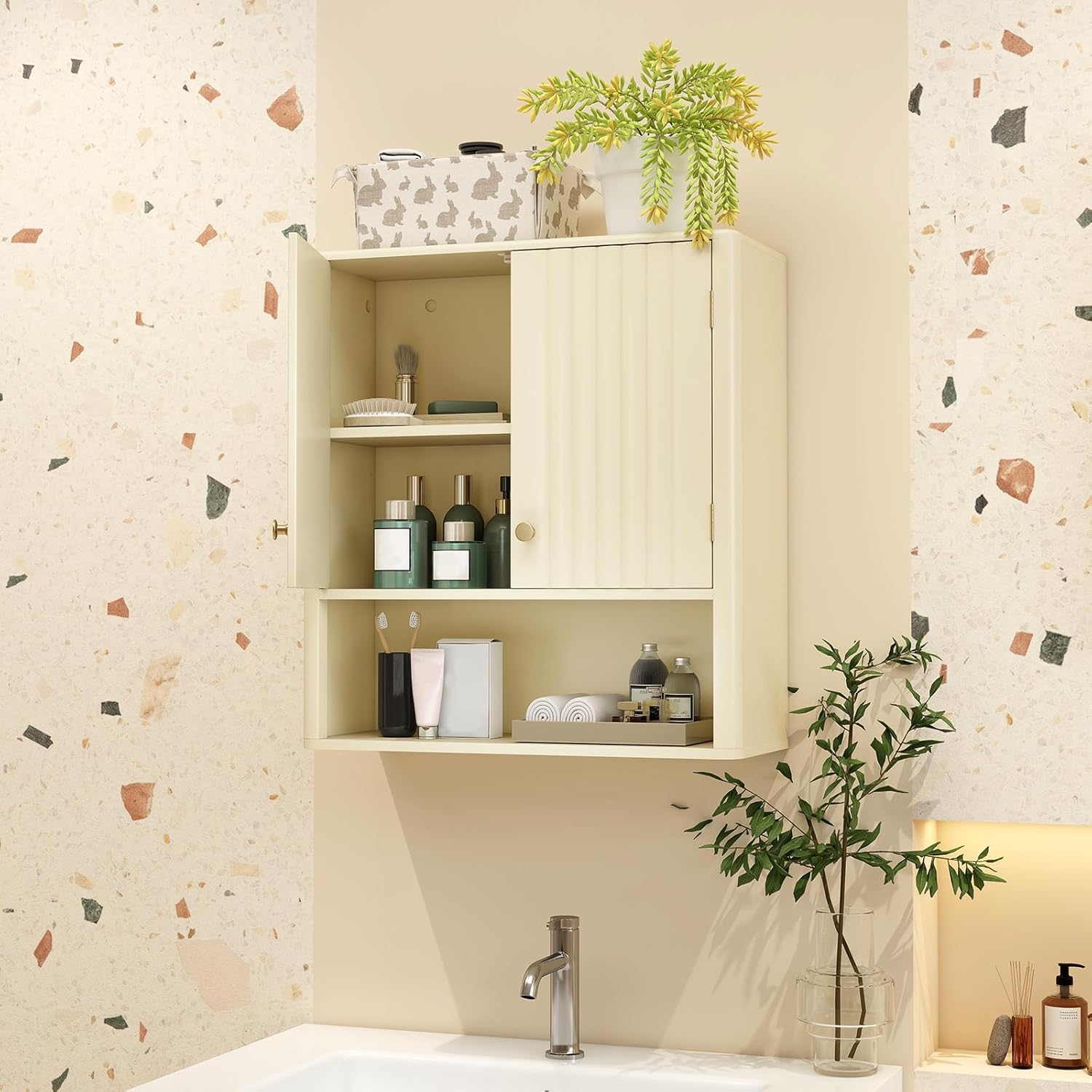 Giantex Wall Mounted Bathroom Cabinet, Fluted Modern Medicine Cabinet with Doors, Adjustable Shelf, Floating Over The Toilet Space Saver Storage Cabinet for Laundry Room, Kitchen (Cream White)