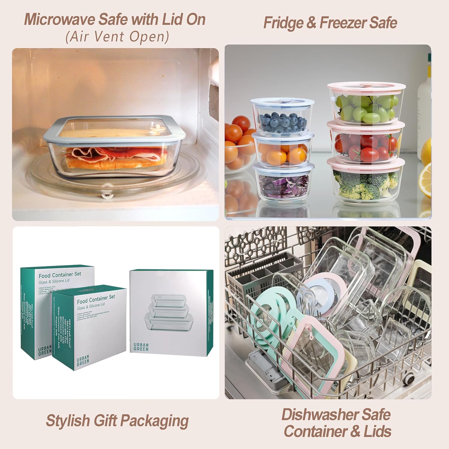 Urban Green glass storage containers with lids (Blue&Pink-5RS)