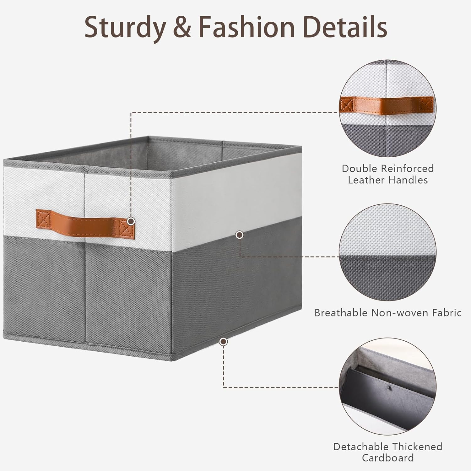 - Color-blocking Design & Decoration: This storage basket for shelves features a color-blocking design of grey and white, exuding a sense of fashion. The storage bins allows you to use it in any situation and can blend perfectly into the environment, decorating your home without looking out of place.