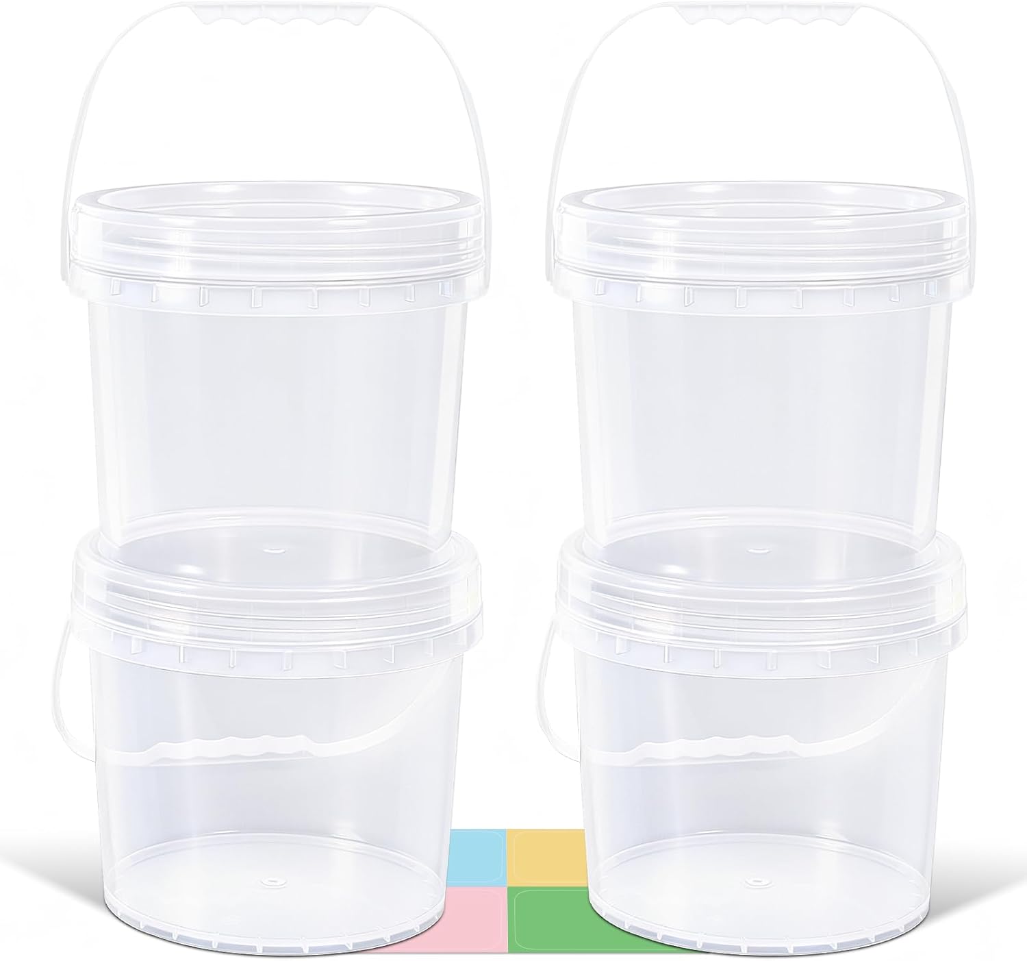 - Versatile Small Storage The clear 1gallon plastic bucket has large capacity, but also fits small needs—transparency eases portioning, so use as small containers with lids/small plastic containers with lids. It’s ideal as sauce containers for lunch box/sauce cups with lids—lightweight and leak-proof. For fridges, it doubles as small storage containers for condiments/fruits, keeping contents visible.
