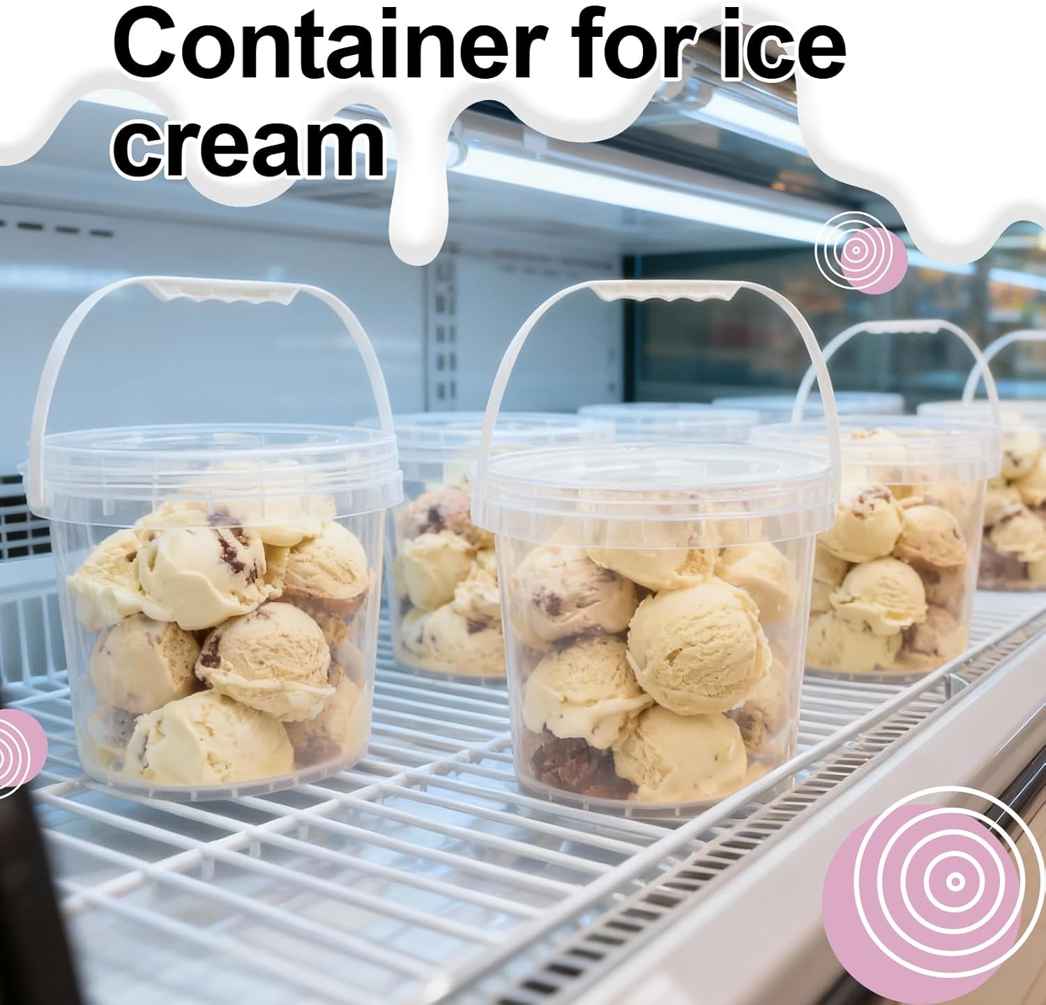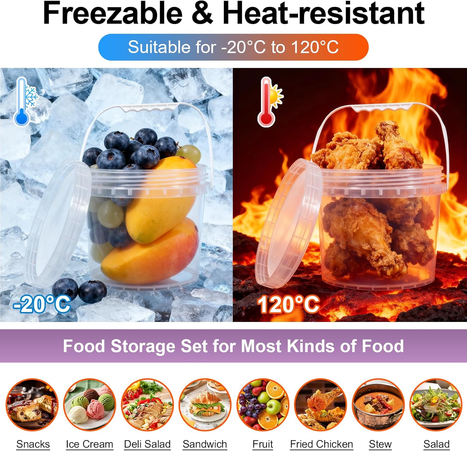 - Freezer-Safe & Reusable This set of clear 1gallon plastic bucket works as freezer storage containers and freezer containers for food storage—withstands low temps, and transparency helps spot frozen meals fast. Freeze leftovers or ice cream without cracking. They’re durable reusable snack containers/reusable snack containers with lids—washable and reusable, replacing disposables.