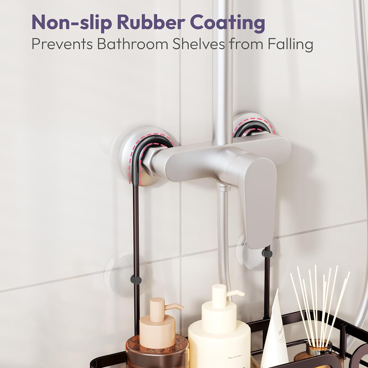 - [Heavy-Duty Support] Shower hanging organizer comes with anti-slip rubber pads and strong suction cups to hold the rack securely in place — prevents wobbling or slipping, even when fully loaded