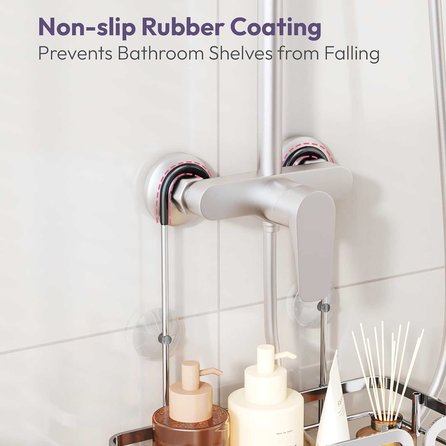 - [Heavy-Duty Support] Shower hanging organizer comes with anti-slip rubber pads and strong suction cups to hold the rack securely in place — prevents wobbling or slipping, even when fully loaded