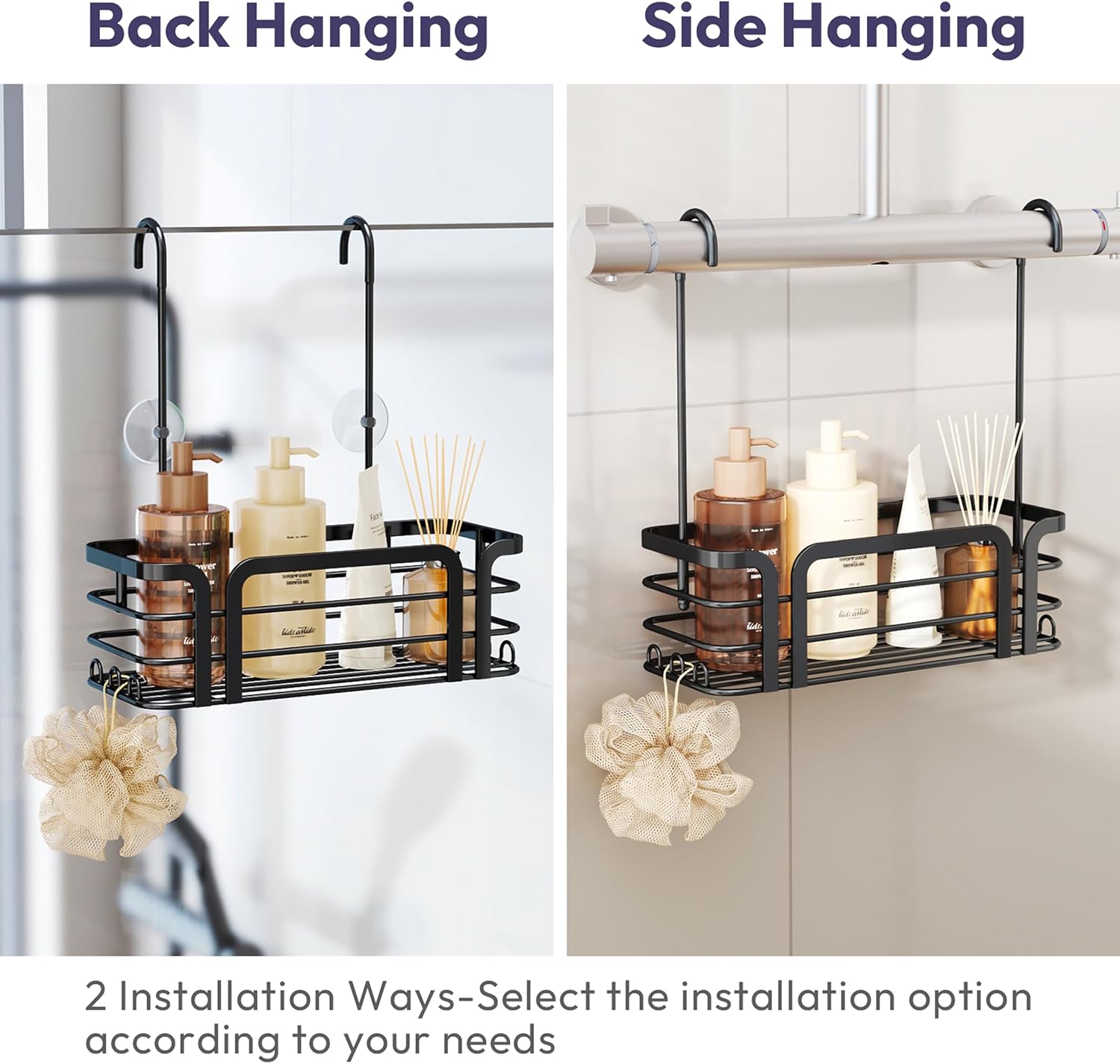 - [Designed to Fit Most Shower Setups] Flexible installation with both side hooks and back hooks included — easily adapt to different shower configurations and preferences. Including shower door handles, top of glass doors, curtain rods, or faucet bars, this bathroom caddy organizer offers 4 mounting options for unmatched flexibility