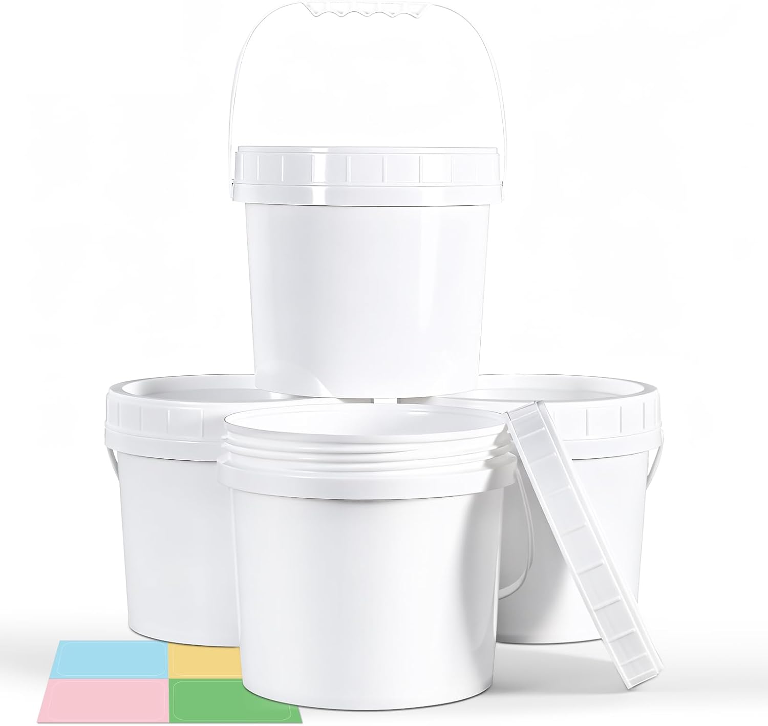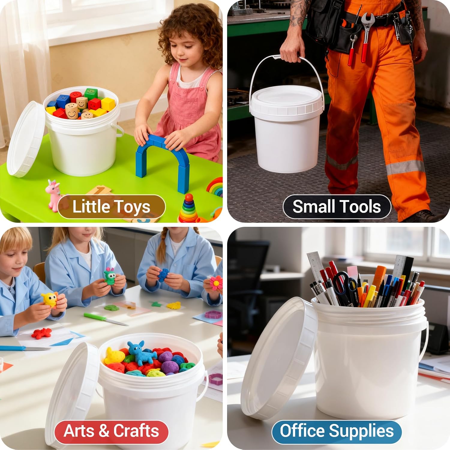 - Multi-Scene Bucket Use As a practical 1gallon plastic bucket and bucket with lid (yes, they work as a compact bucket too!), it’s designed as plastic containers with lids for food and food storage essentials, but has more uses. They can act as a mini cleaning bucket for small spills, a halloween bucket for candy (thanks to the secure lid), or even a container for small craft supplies. Unlike flimsy quart containers with lids or one-time-use fruit cups with lid, these are built to handle daily wear and tear.