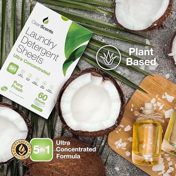 CleanScents Laundry Detergent Sheets (60 Sheets) (Pure Fresh)