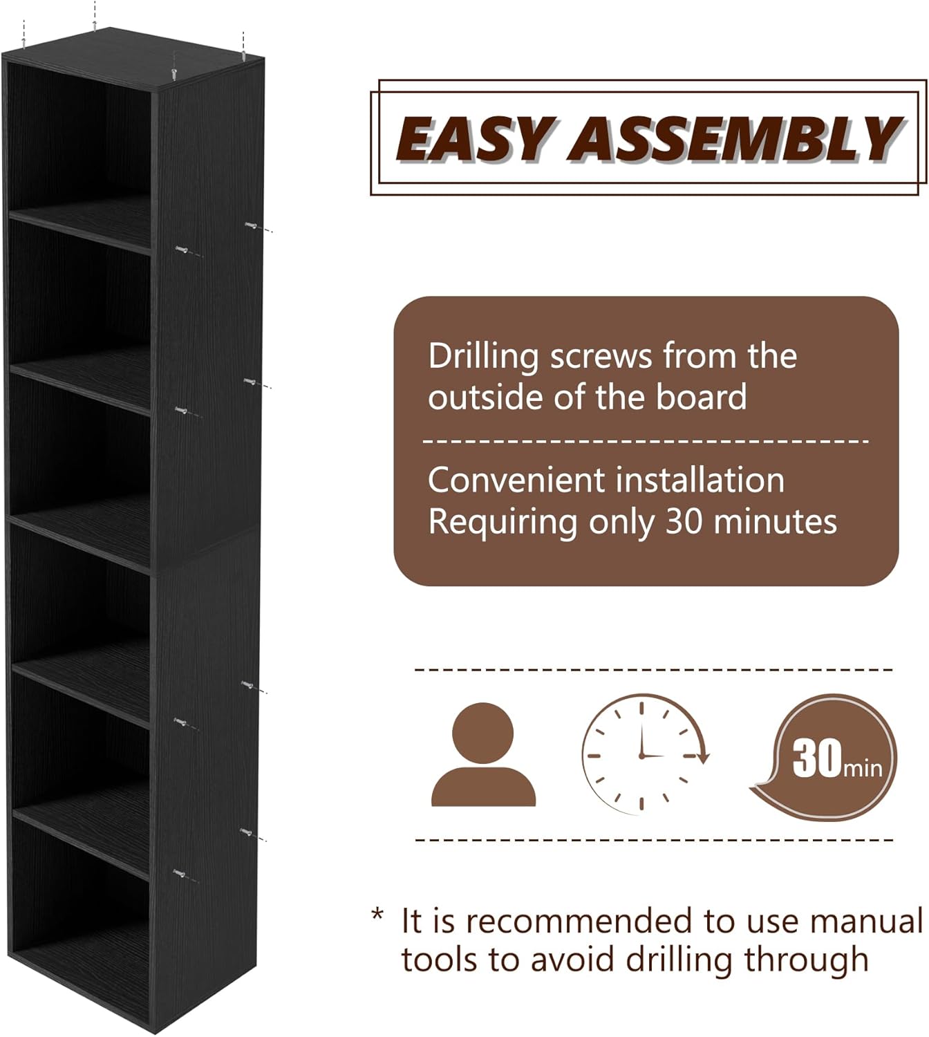 Wooden 6 Cube Storage Organizer, 6 Tier Storage Cubes Storage Display Cubby, 62 Inch Tall Versatile Cubes Shelf and Cubby Organizer for Any Space (Black, 6 Cube-W(11.8inch)