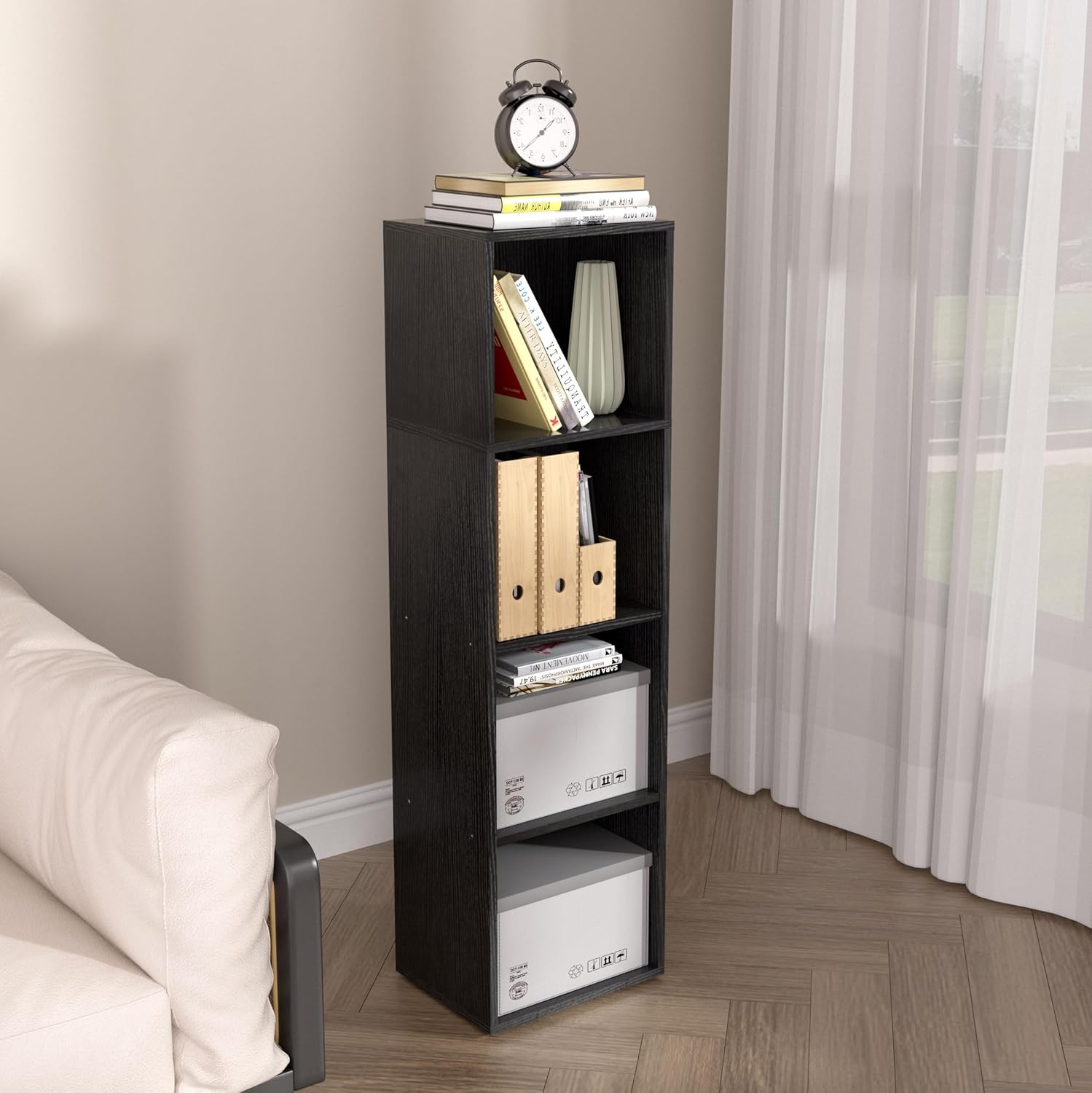 Wooden 4 Cube Storage Organizer, 4 Tier Storage Cubes Storage Display Cubby, 42 Inch Tall Versatile Cubes Shelf and Cubby Organizer for Any Space (Black, 4 Cube-W(11.8inch)