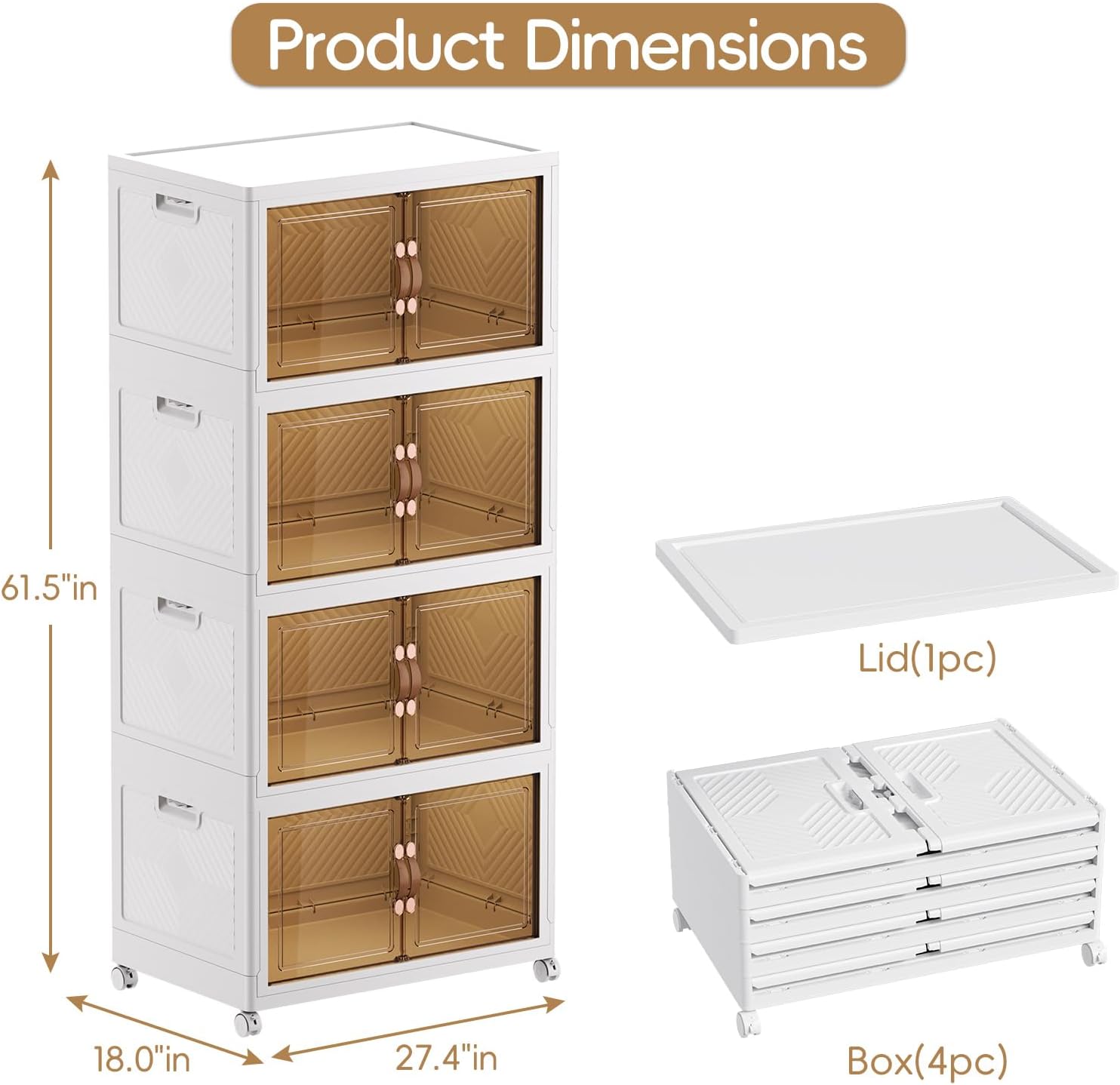 - Large Capacity: Total size 27.4" × 18.0" × 61.5". Made from high-impact PET+PP, this stackable storage bin is strong, clear, perfect for clothes, bedding, or seasonal items.
