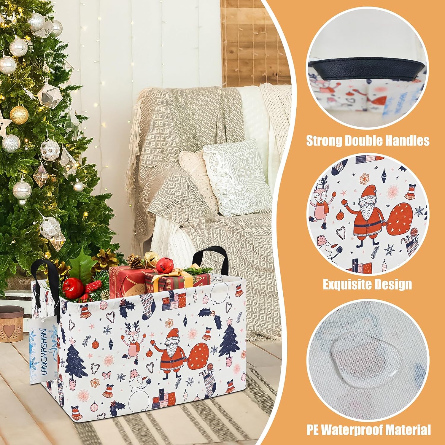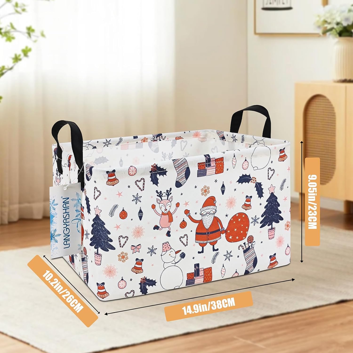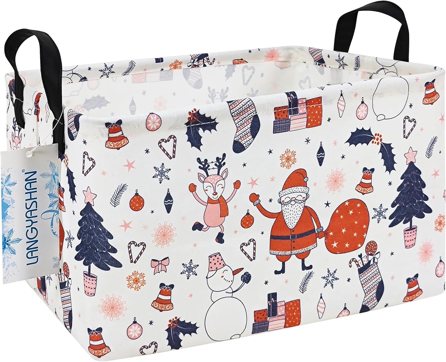 LANGYASHAN Rectangular Christmas Santa Claus Storage Basket with Handles for Organizing Home Kitchen Boys and Girls Toys Office Closet Shelf Baskets (Rec Santa Claus)