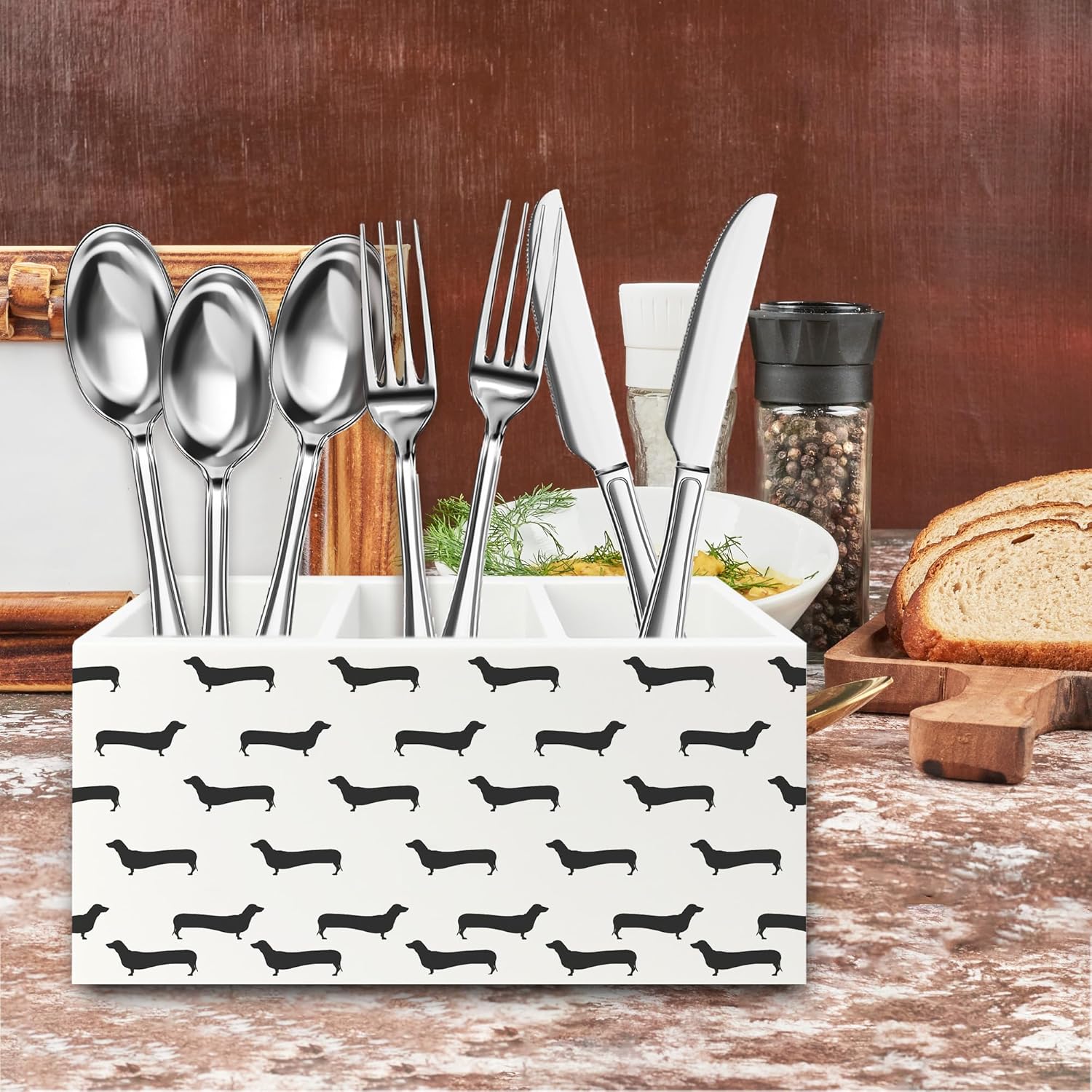 Black Dachshund Pen Pencil Holder Organizer for Desk, Weiner Dog Gifts Wooden Box Signs Decorations for Home Office Desk Tabletop, Dachshund Lovers Gifts for Women Men