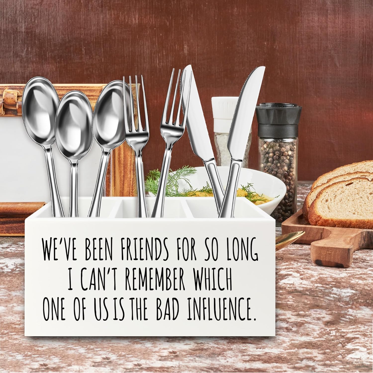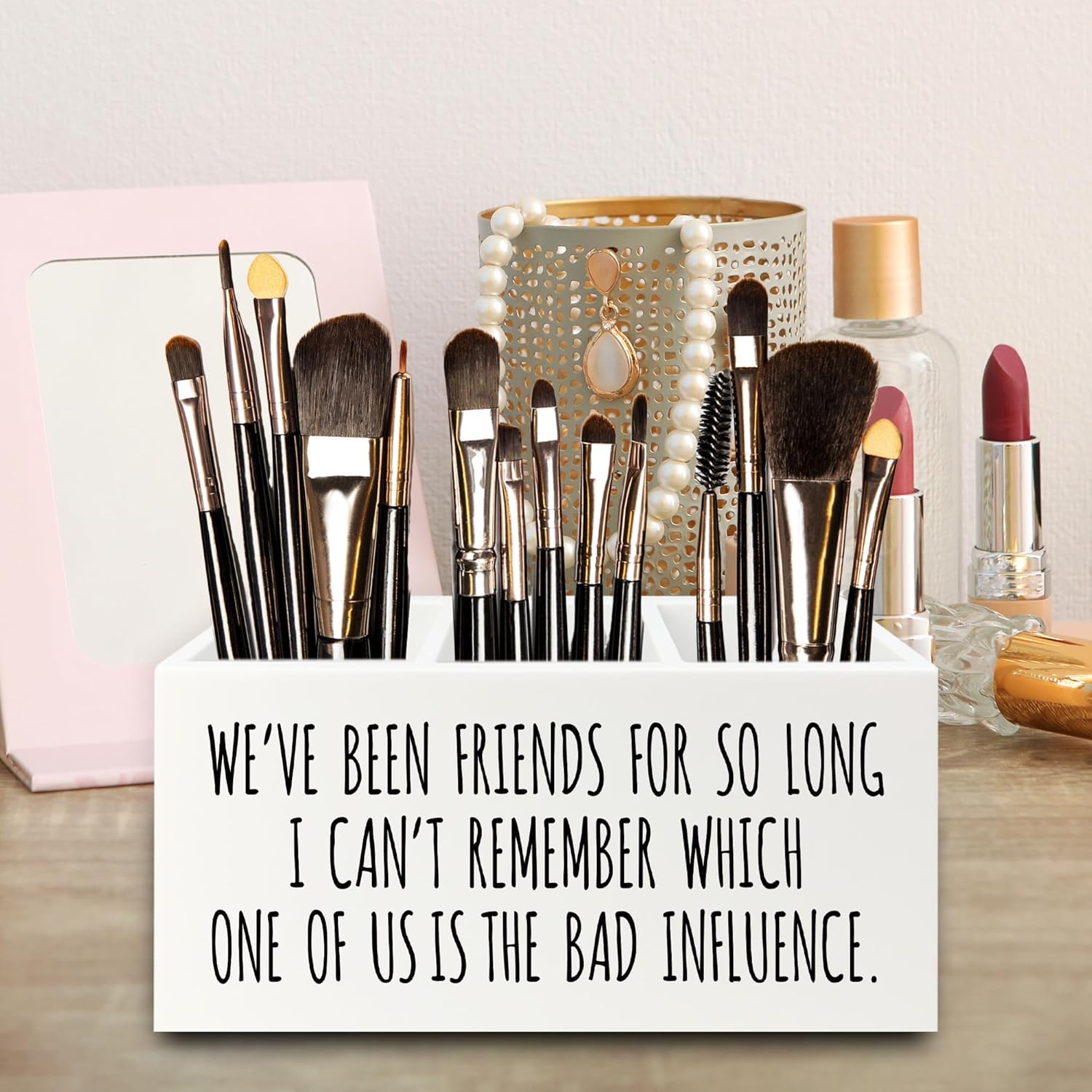 Funny Sarcastic Friendship Pen Pencil Holder Organizer for Desk, Humorous Gifts, We've Been Friends for So Long I Can't Remember Which Wooden Box Signs Decor for Home Office Desk Tabletop