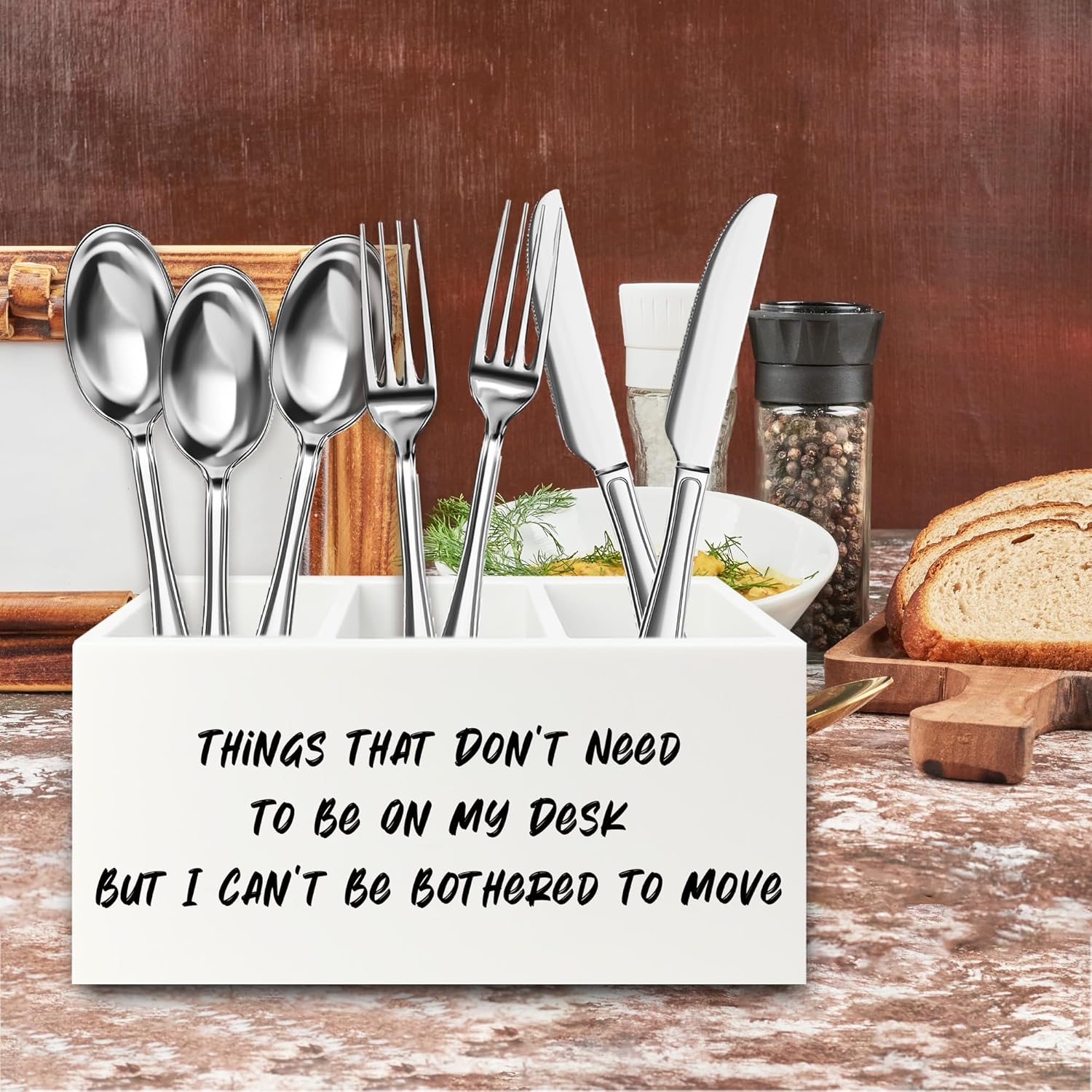 Funny Office Pen Pencil Holder Organizer for Desk, Humorous Gifts for Women Men, Funny But I Can't Be Bothered to Move Wooden Box Signs Decorations for Home Office Desk Tabletop