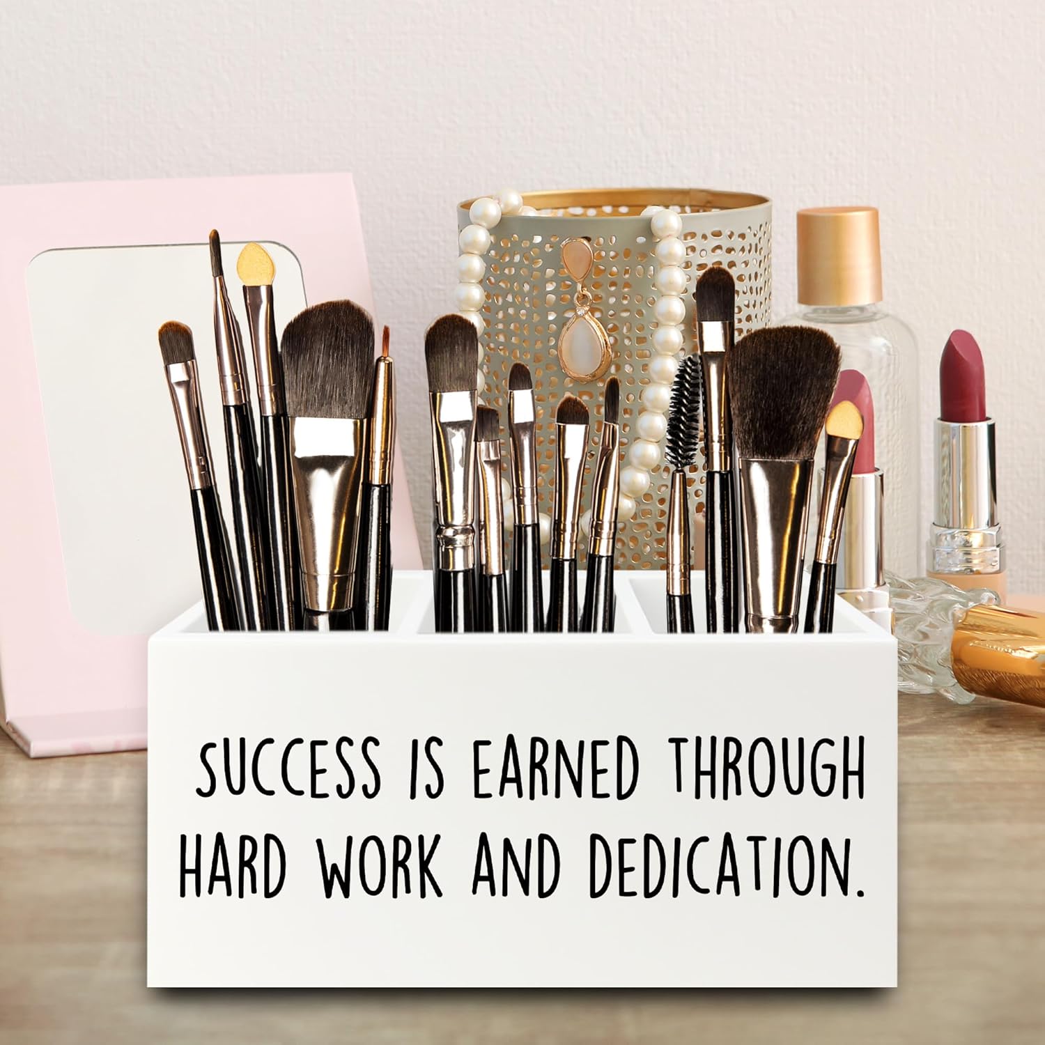 Motivational Gifts Pen Pencil Holder Organizer for Desk, Success Is Earned Through Hard Work and Dedication Inspirational Wooden Box Signs Decorations for Home Office Desk Tabletop