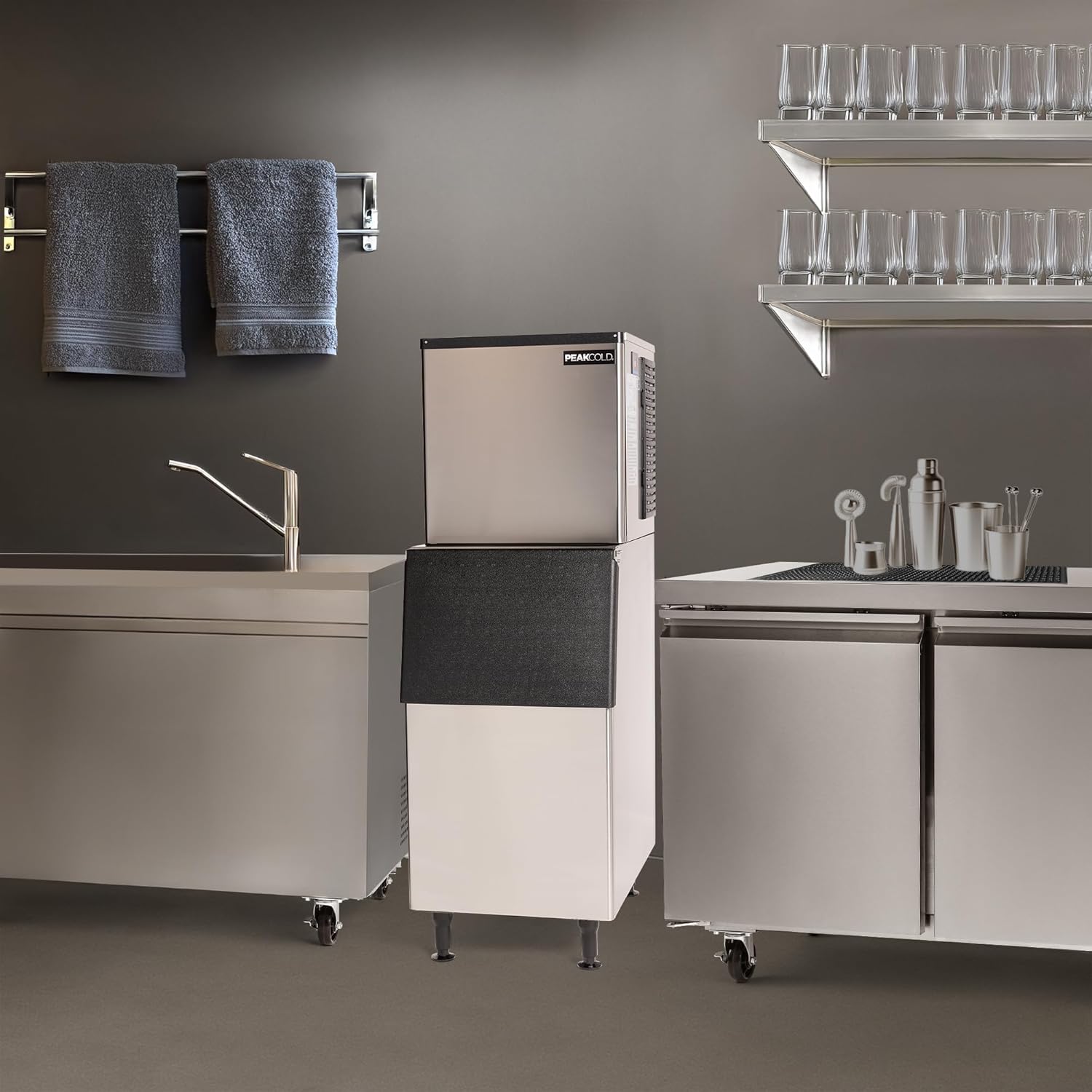 PeakCold Modular Commercial Ice Maker, 350 lbs/Day, 275lb Storage Bin, Floor Model Stainless Steel Half-Cube Ice Maker with Digital Controller