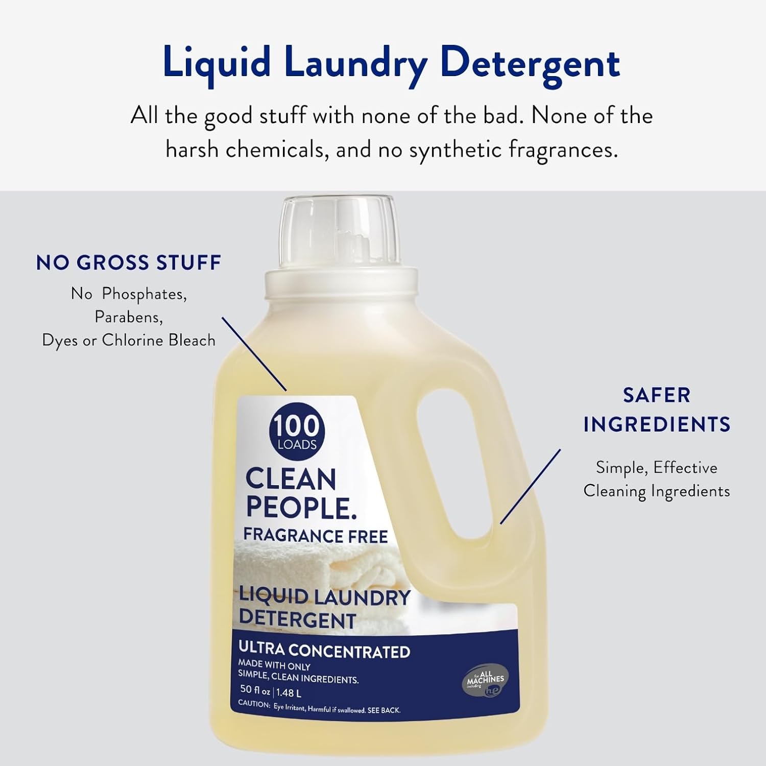 The Clean People Liquid Laundry Detergent - Recyclable Packaging, Stain Fighting - Ultra Concentrated, Laundry Soap - Fragrance Free, 200 Loads