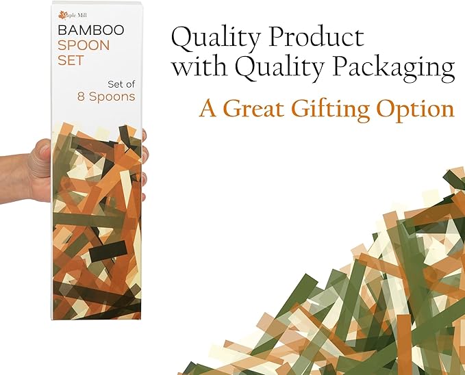 - HIGH QUALITY WOODEN SPOON SET - Eco-friendly Wood Spoons for Cooking made of high-quality Bamboo. It's food-safe and non-toxic. 100% Bio-degradable. Designed to last a lifetime, they will not absorb odors and will not crack under heat. Mill Bamboo Spoons - Set of 8 Spoons